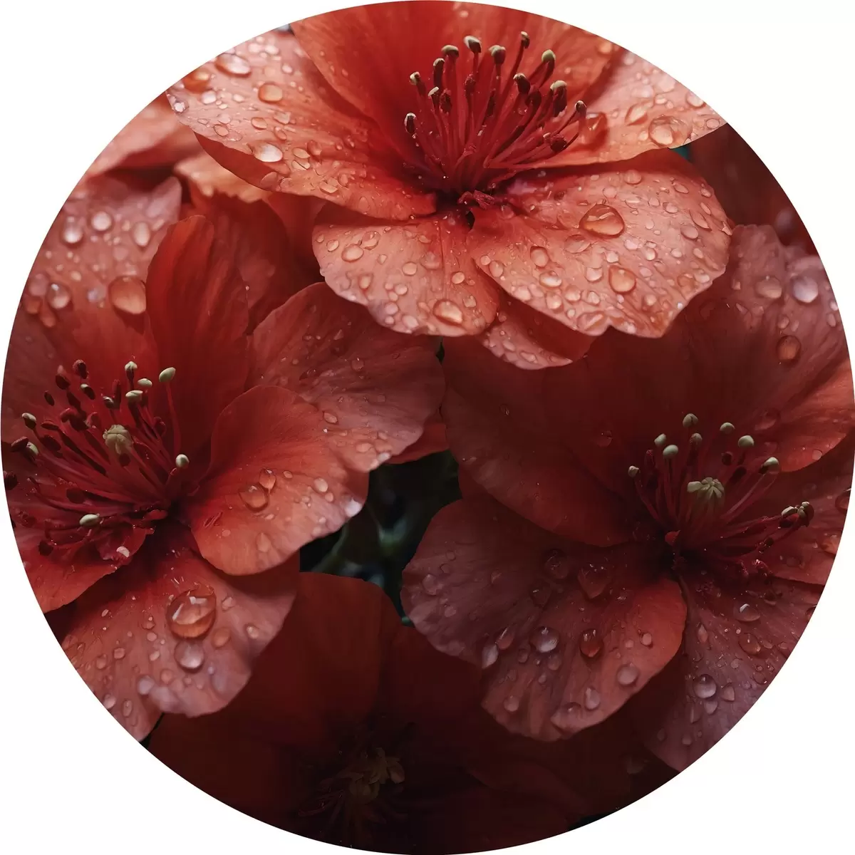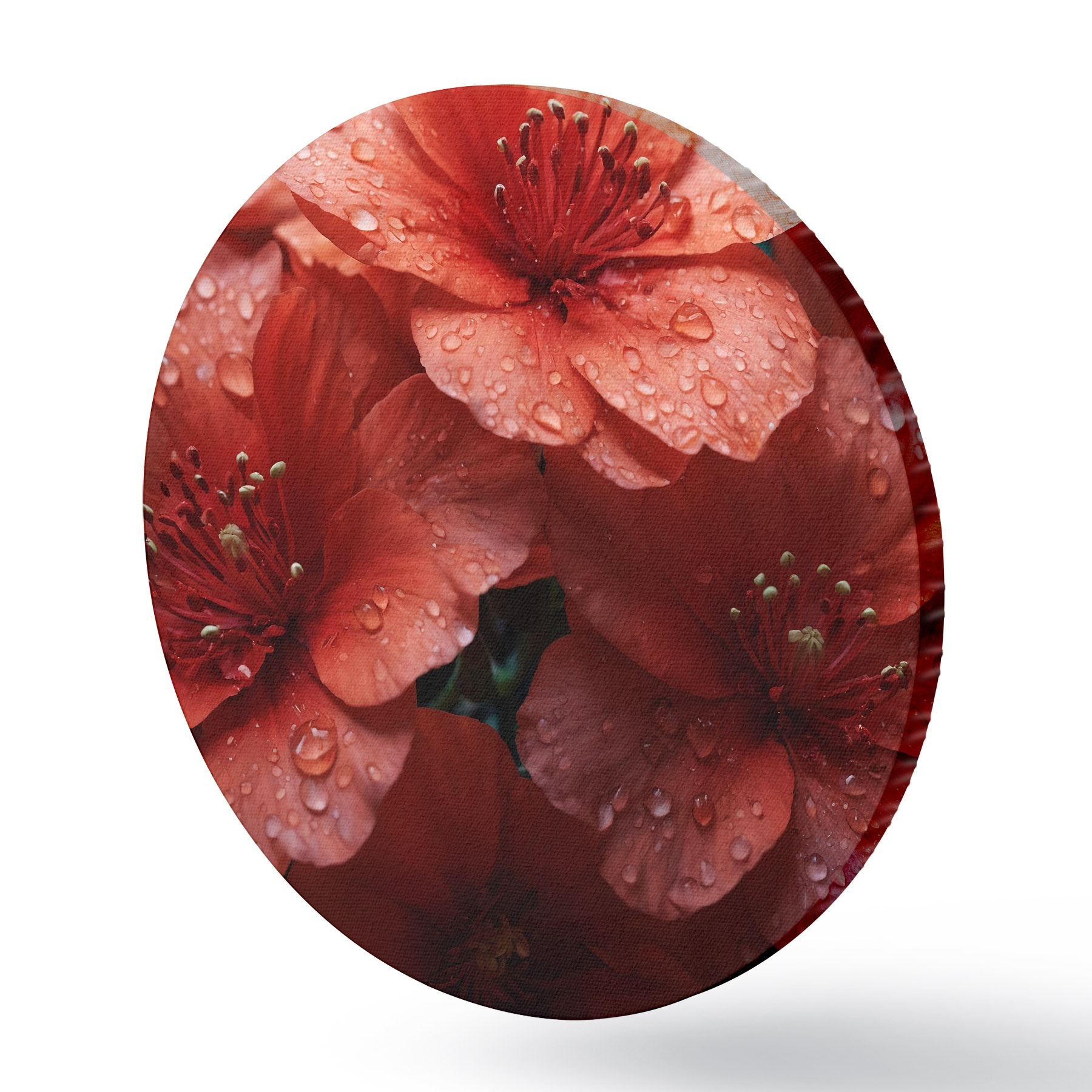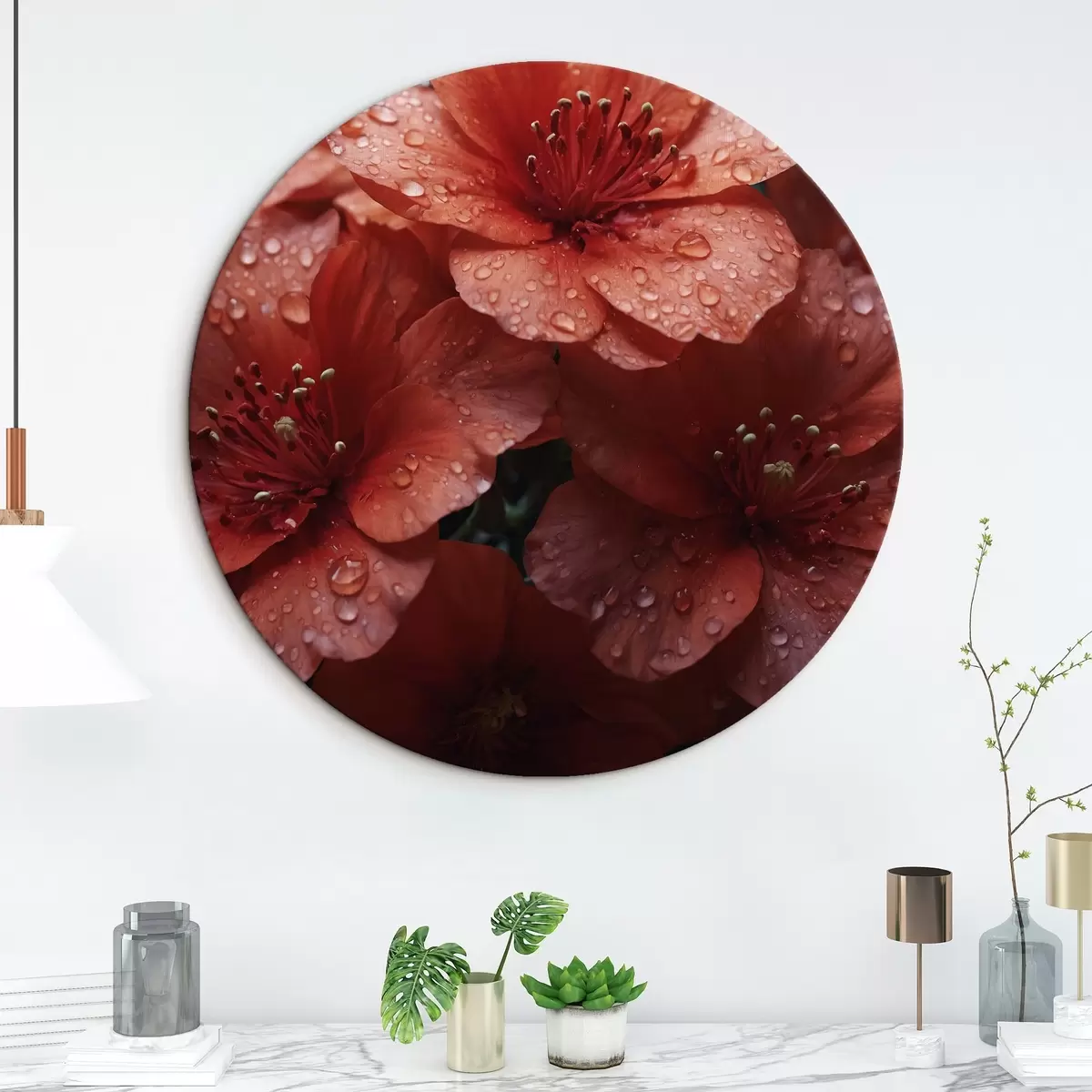 Ronde schilderijen Rode bloemen met dauwdruppels r43878