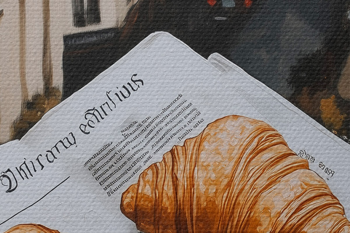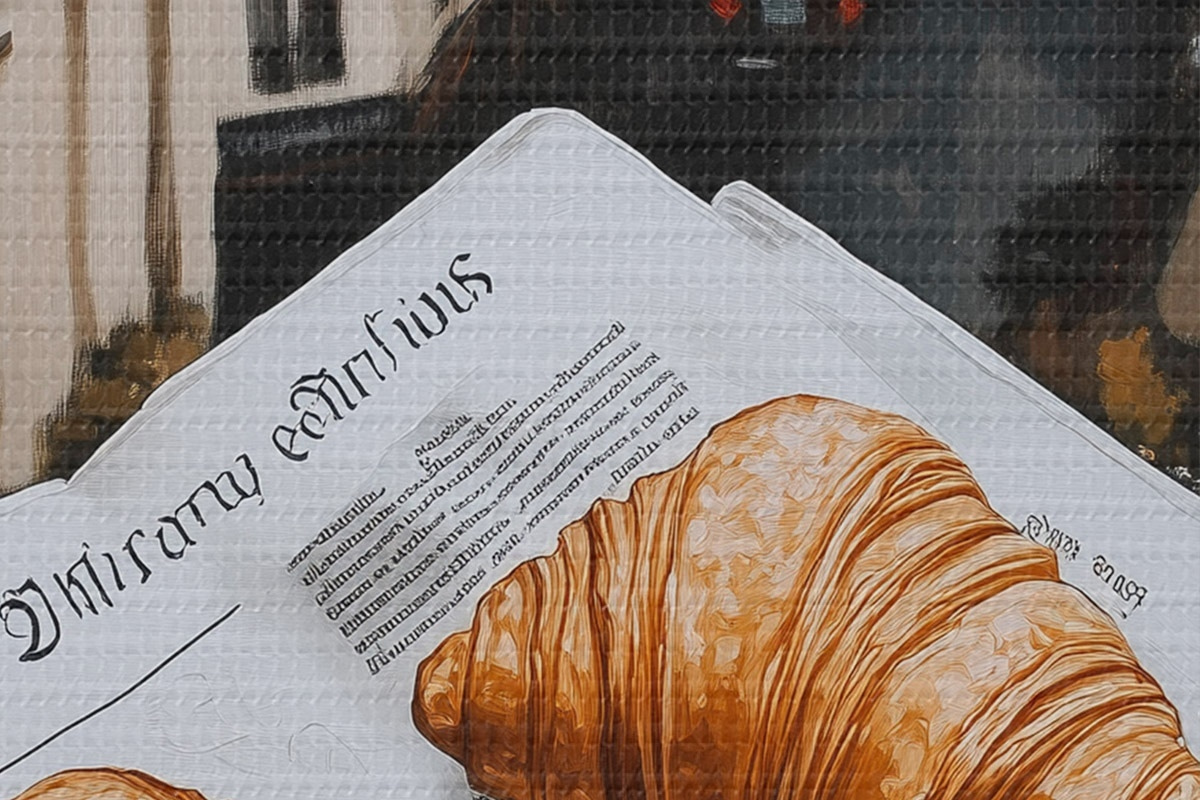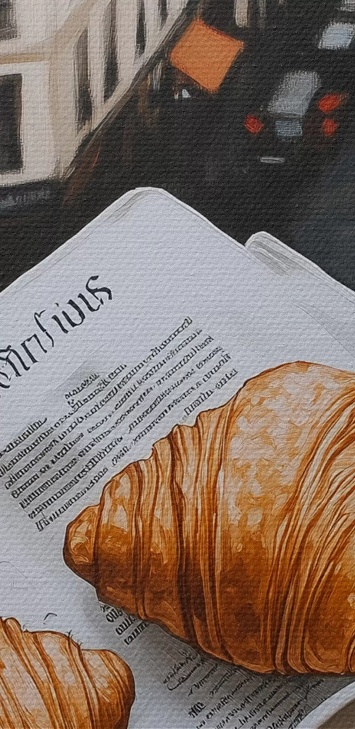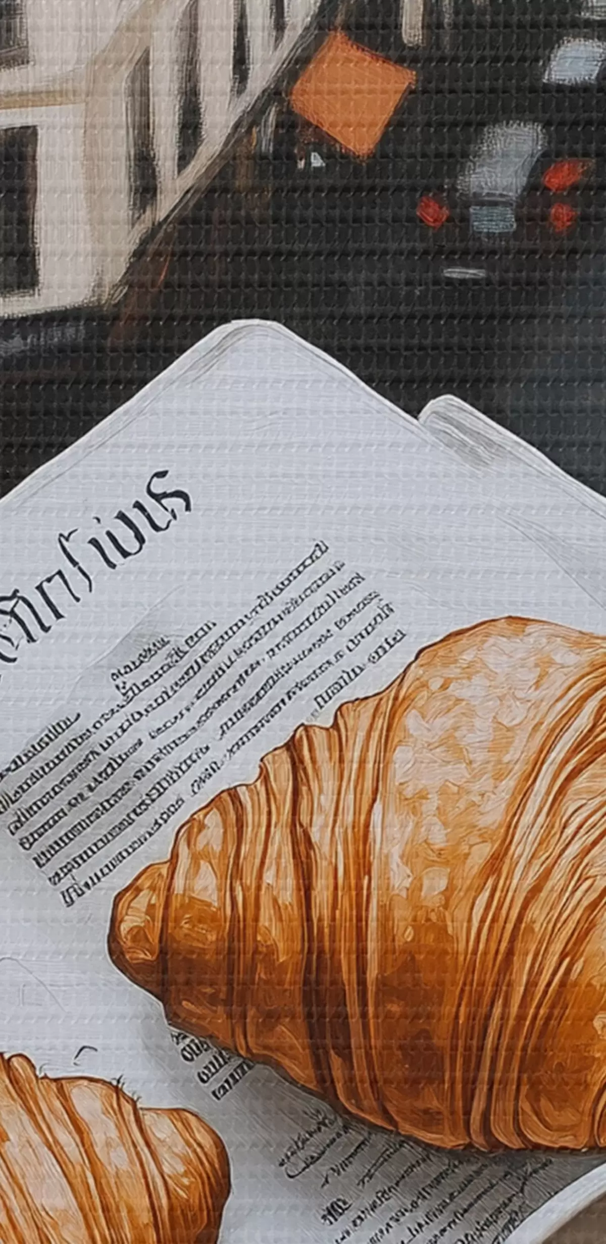 Afbeelding Ochtendkoffie met croissants, stadsstraat, architectuur, olieverfstijl Nr r43891