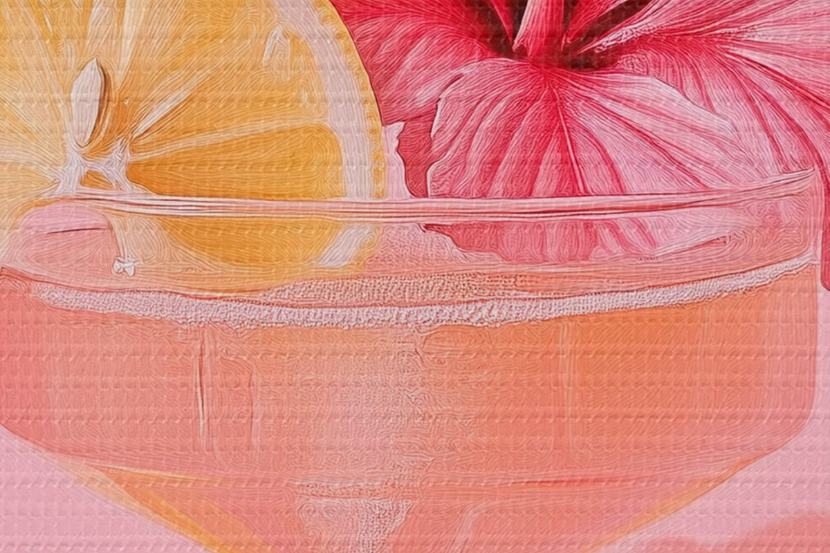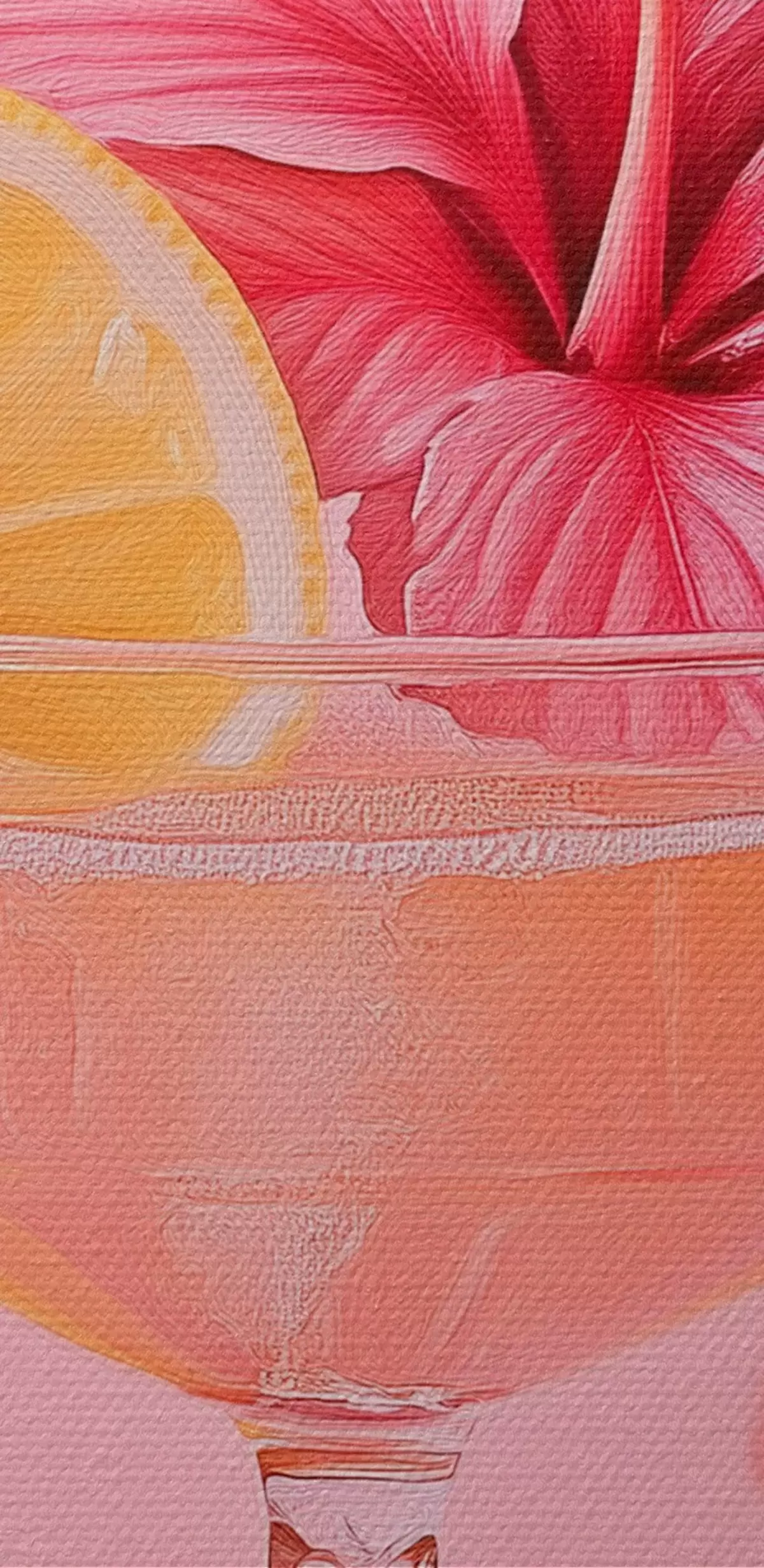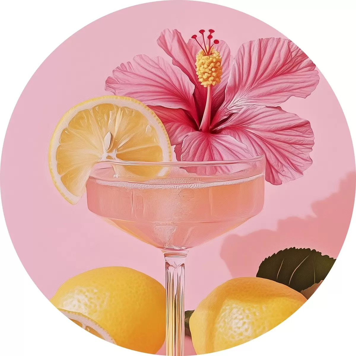 Afbeelding Roze cocktail met hibiscusbloem, citroenen, realisme Nr r43893