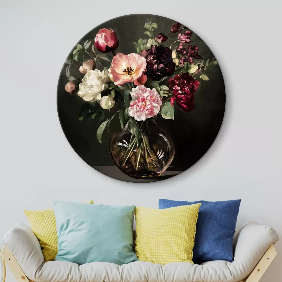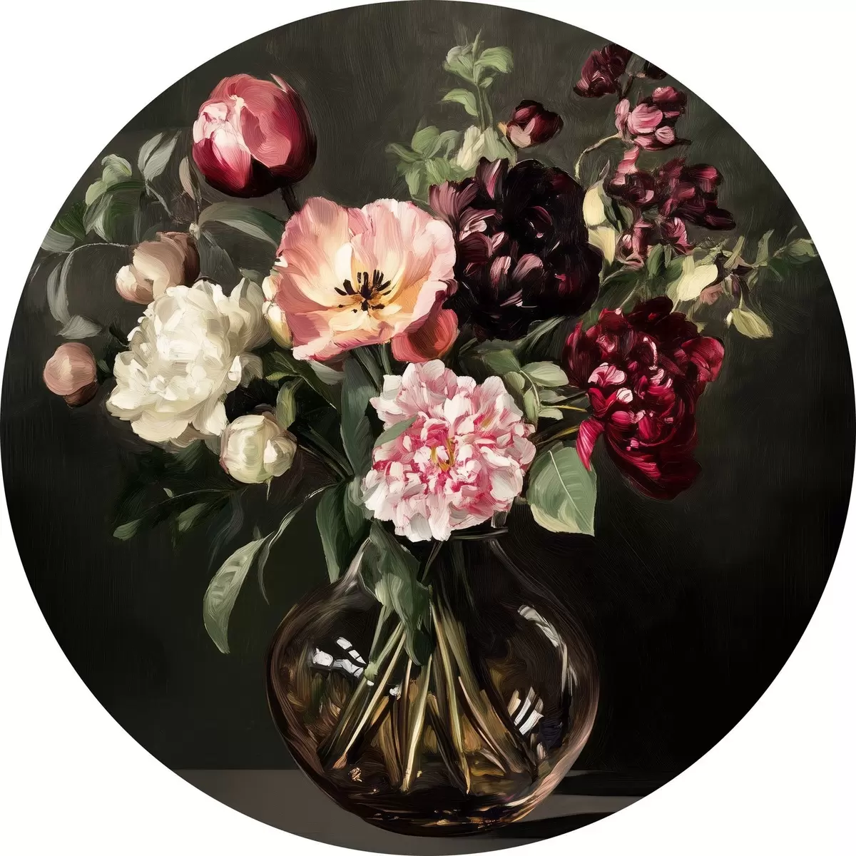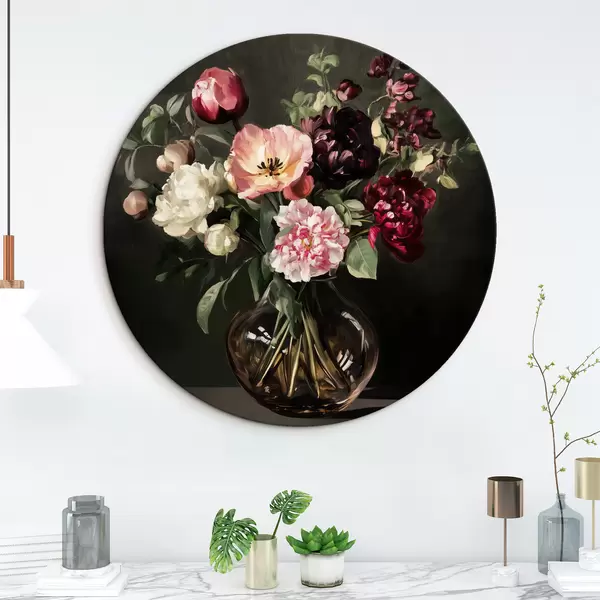 Ronde schilderijen Boeket op donkere achtergrond r43912