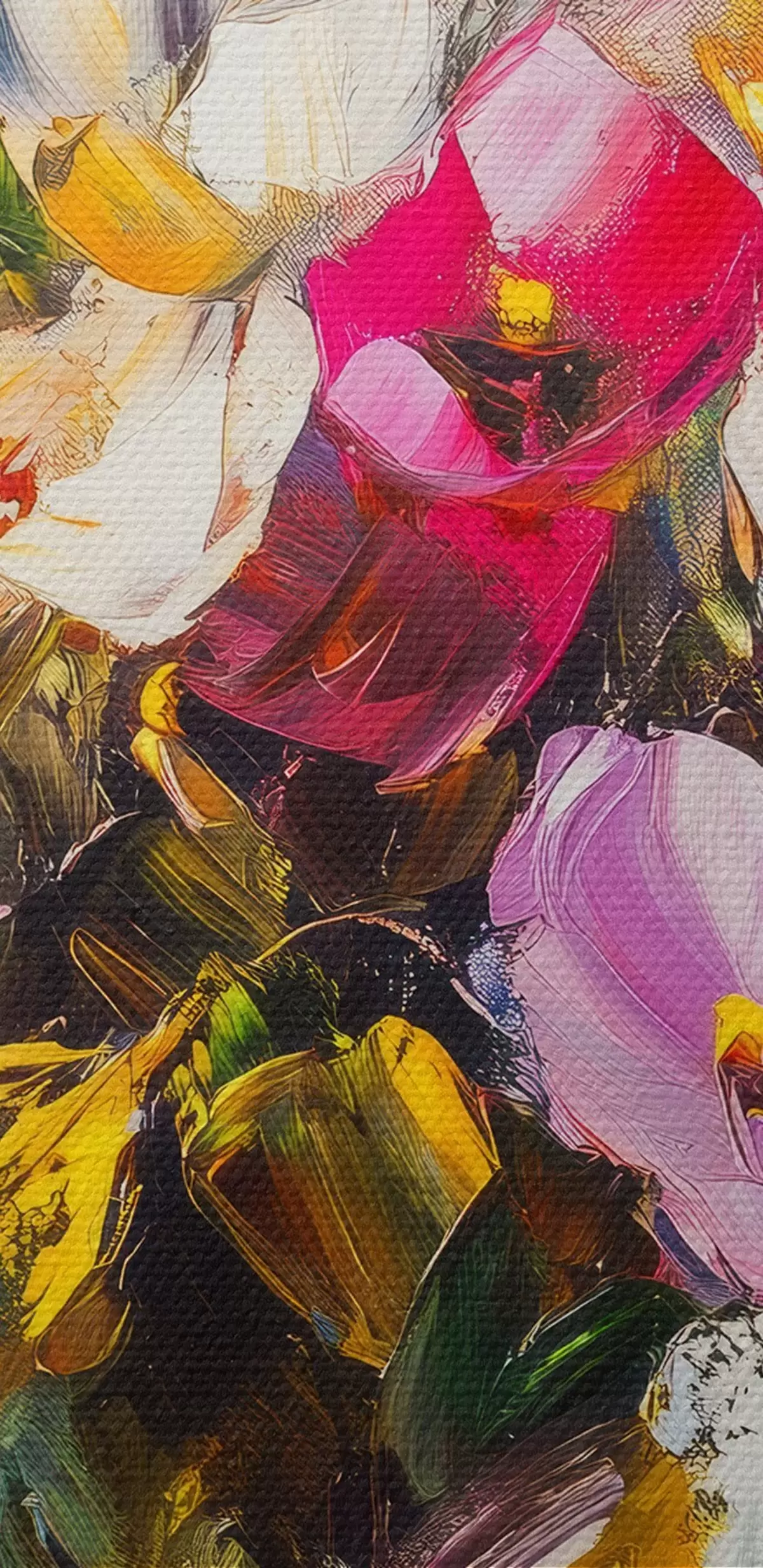 Het schilderij kan direct na ontvangst worden opgehangen. Het schilderij wordt opgespannen op een 2 cm breed houten spieraam.