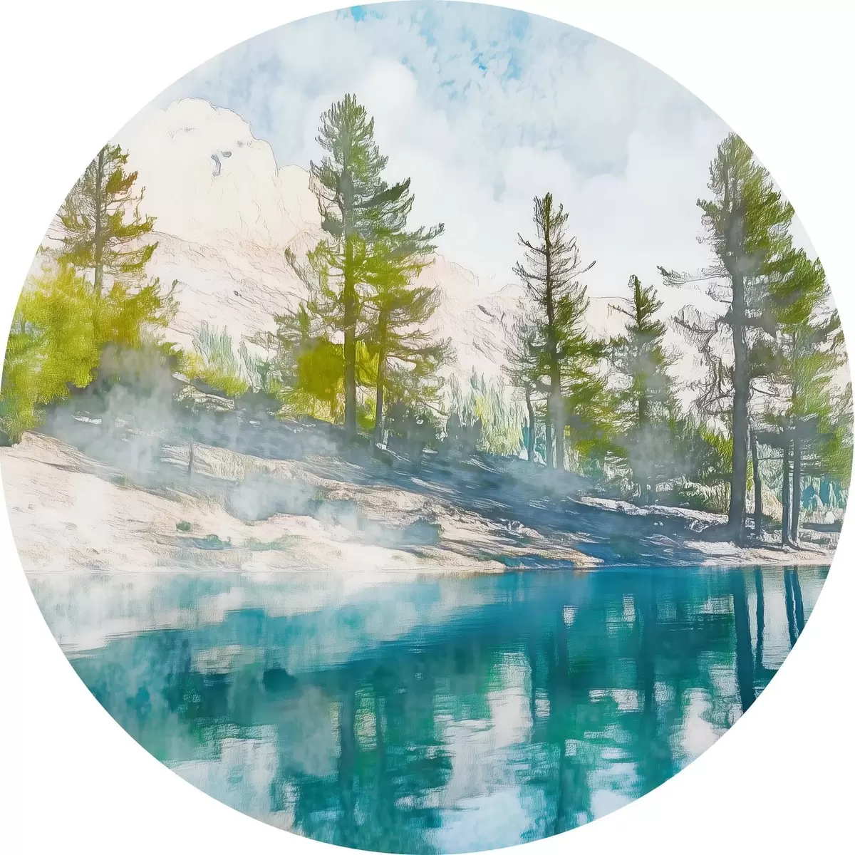 Ronde schilderijen Kust van het meer r43924