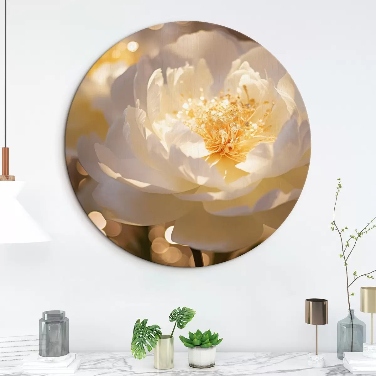 Ronde schilderijen Witte bloem op wazige achtergrond r43947
