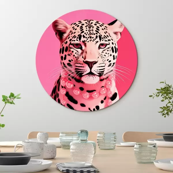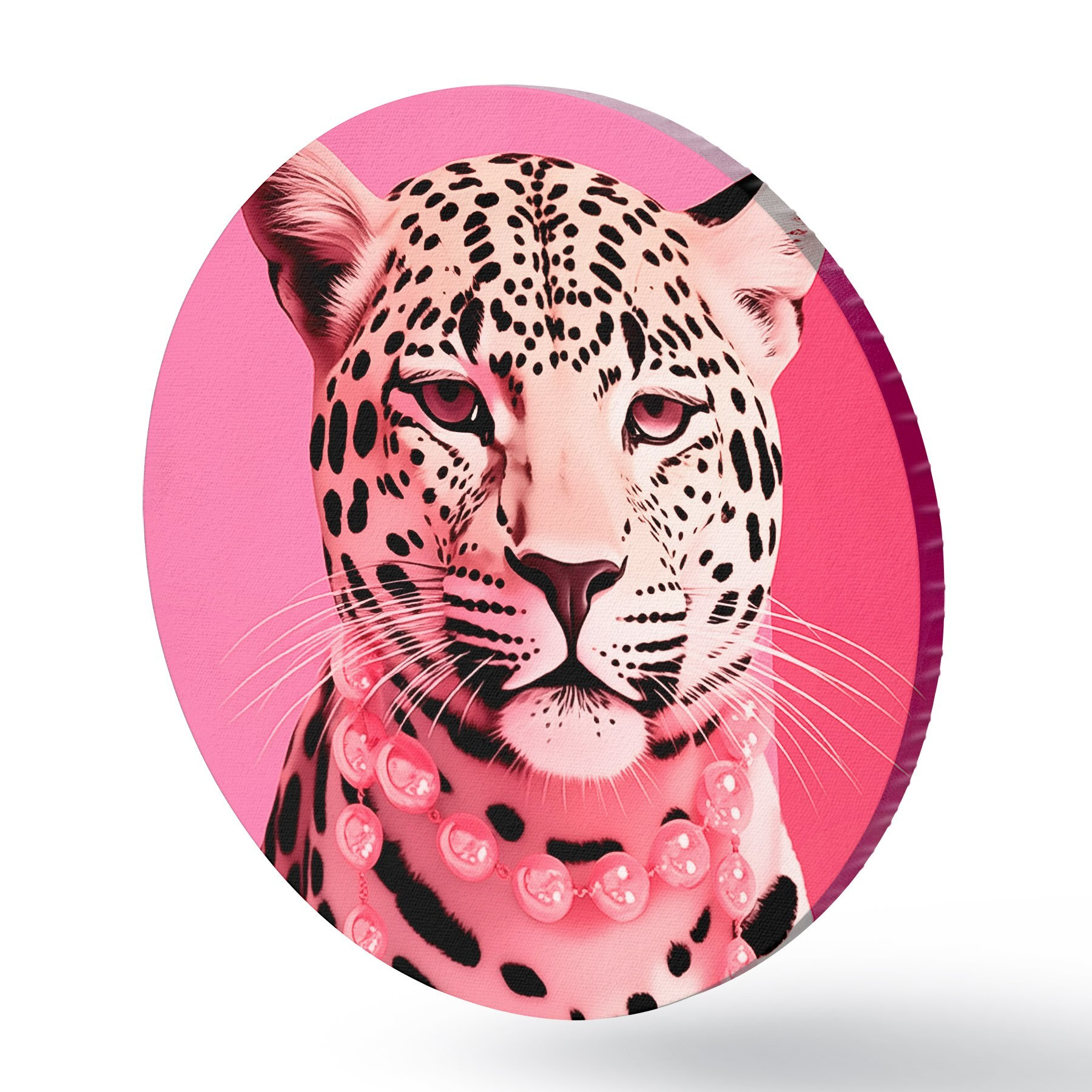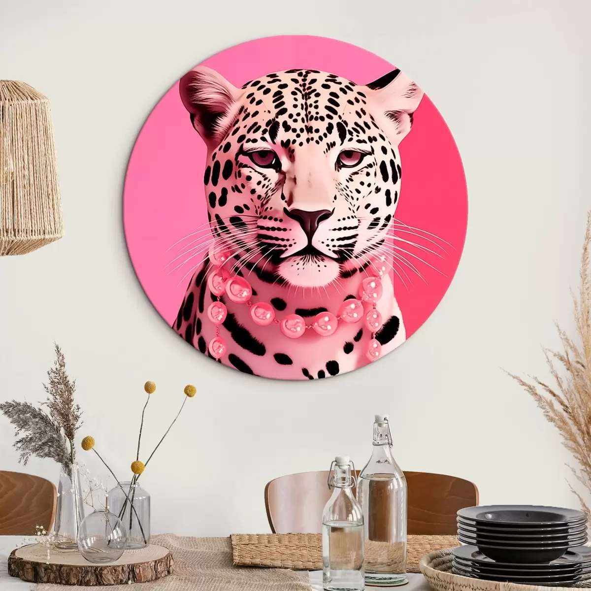 Ronde schilderijen Portret van een luipaard met roze ketting r43976
