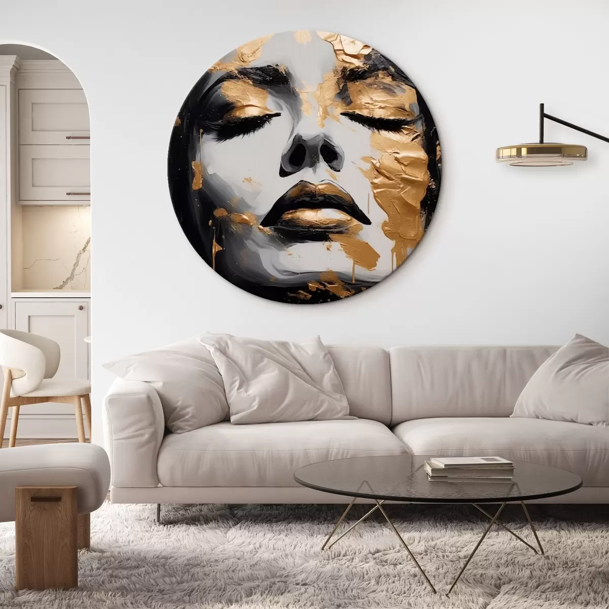 Ronde schilderijen Portret van een vrouw met abstracte streken r43988