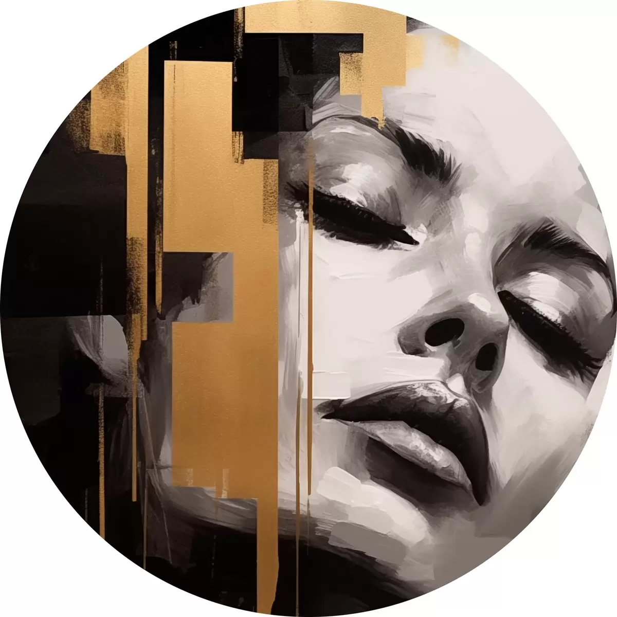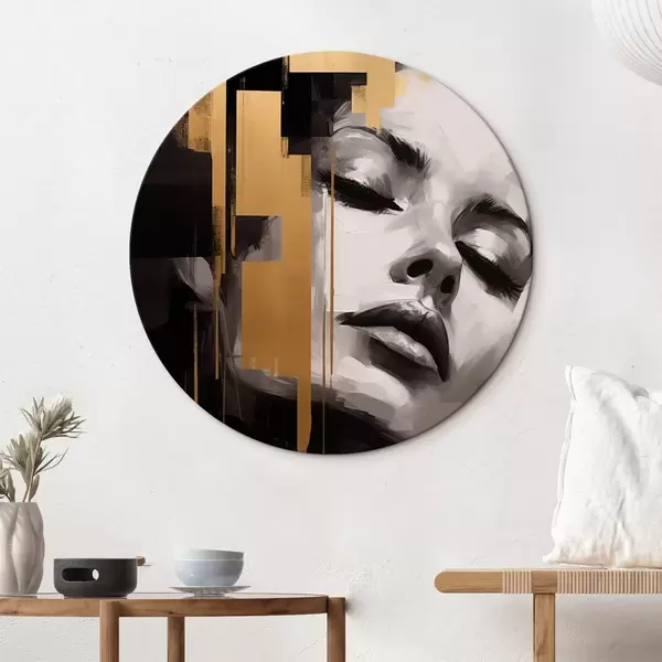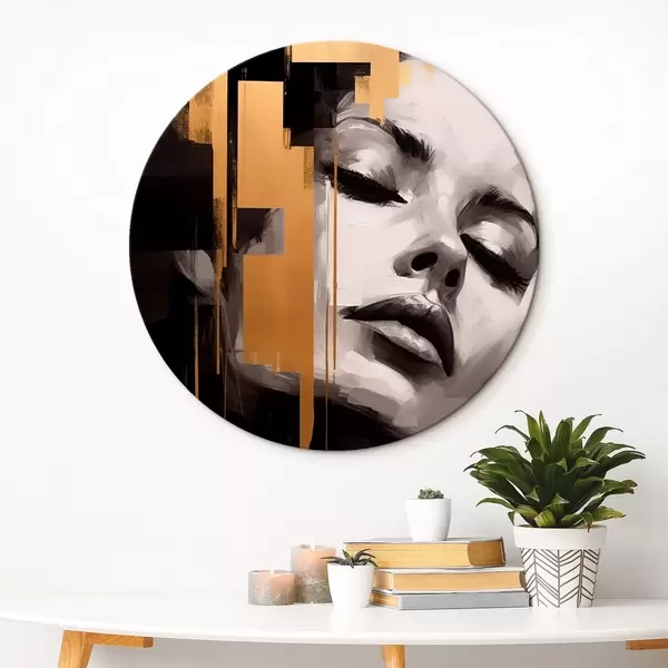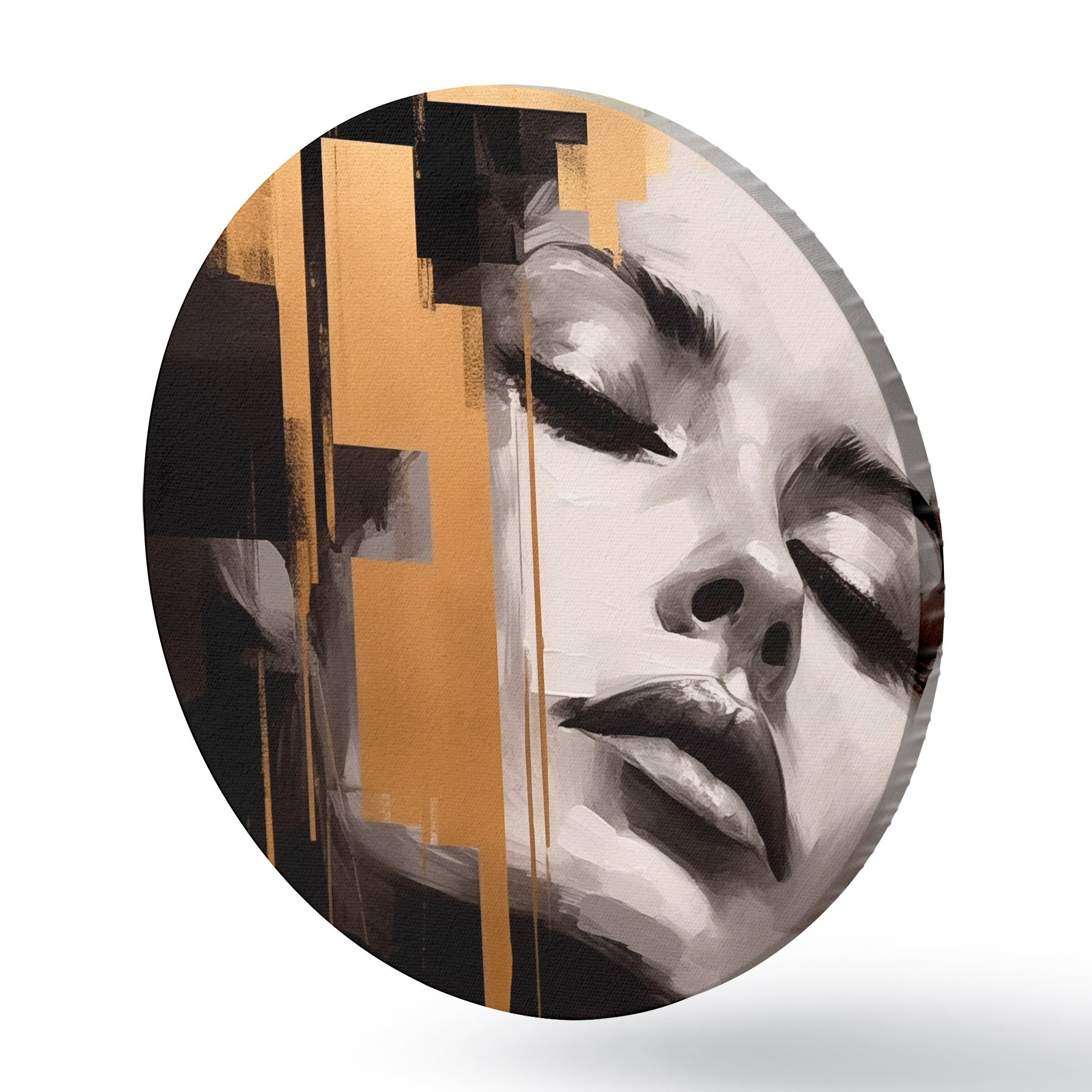 Ronde schilderijen Vrouwenportret met geometrische accenten r43989
