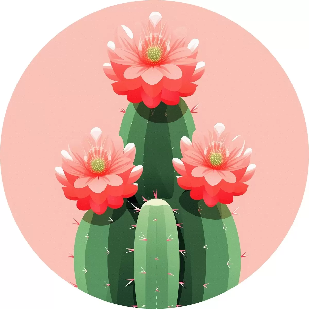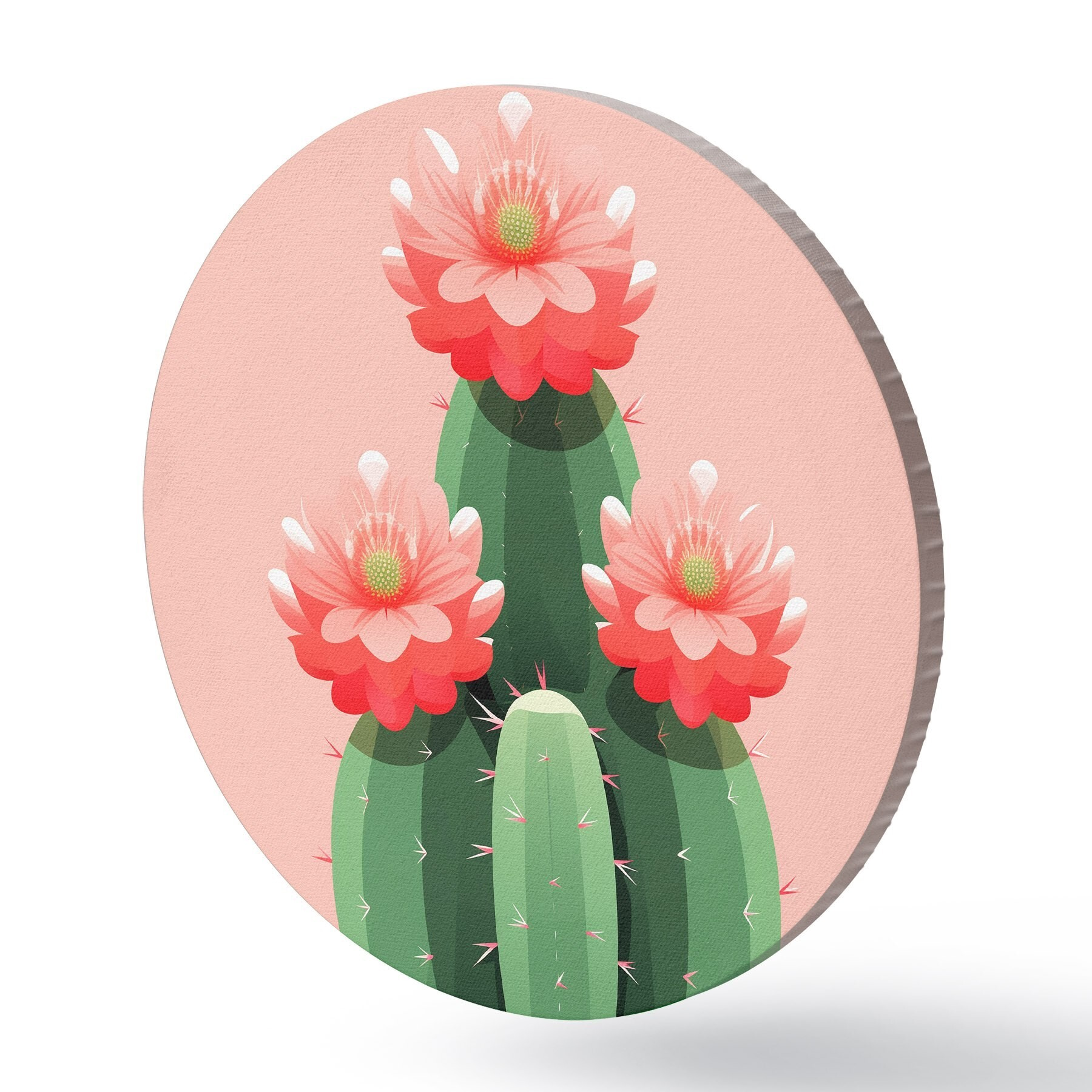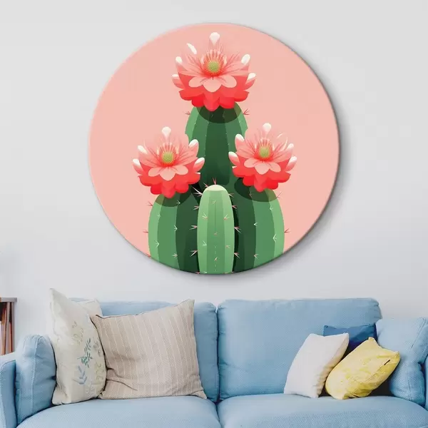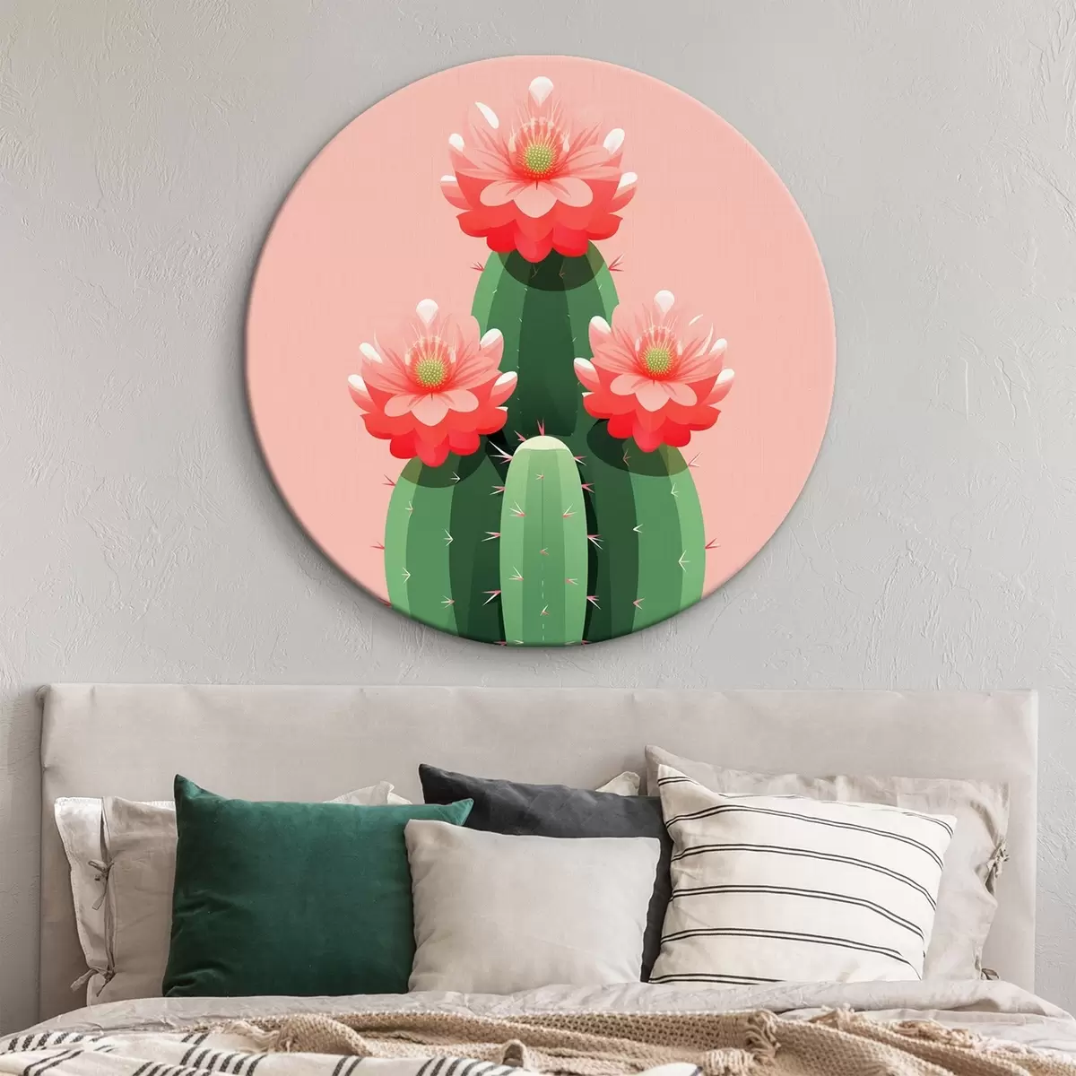 Ronde schilderijen Bloeiende cactus in een pot r43996