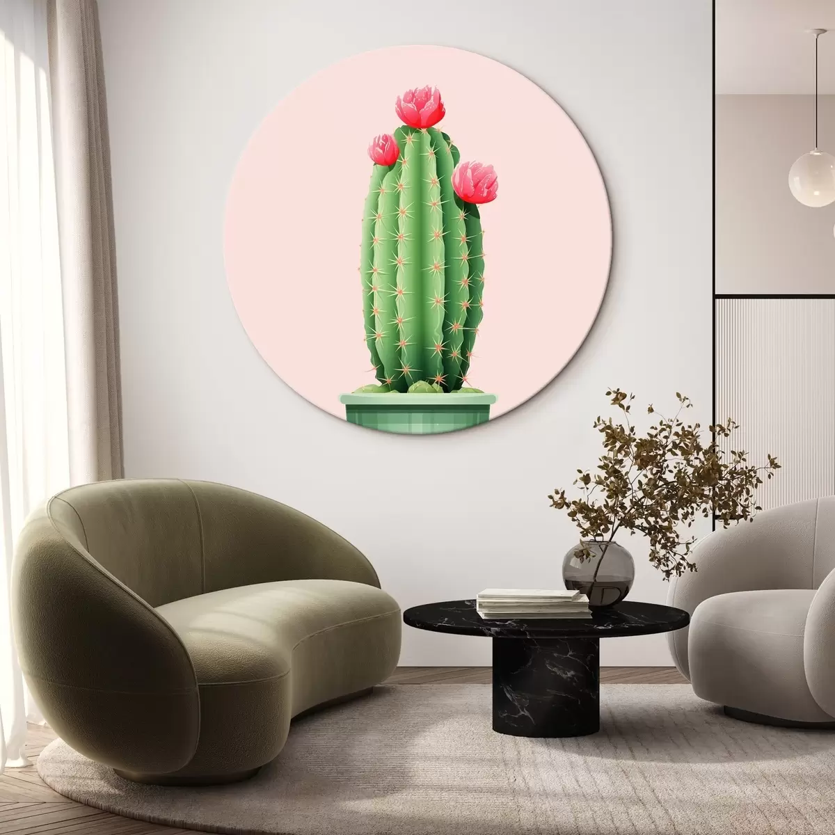 Ronde schilderijen Cactus in een pot r43999