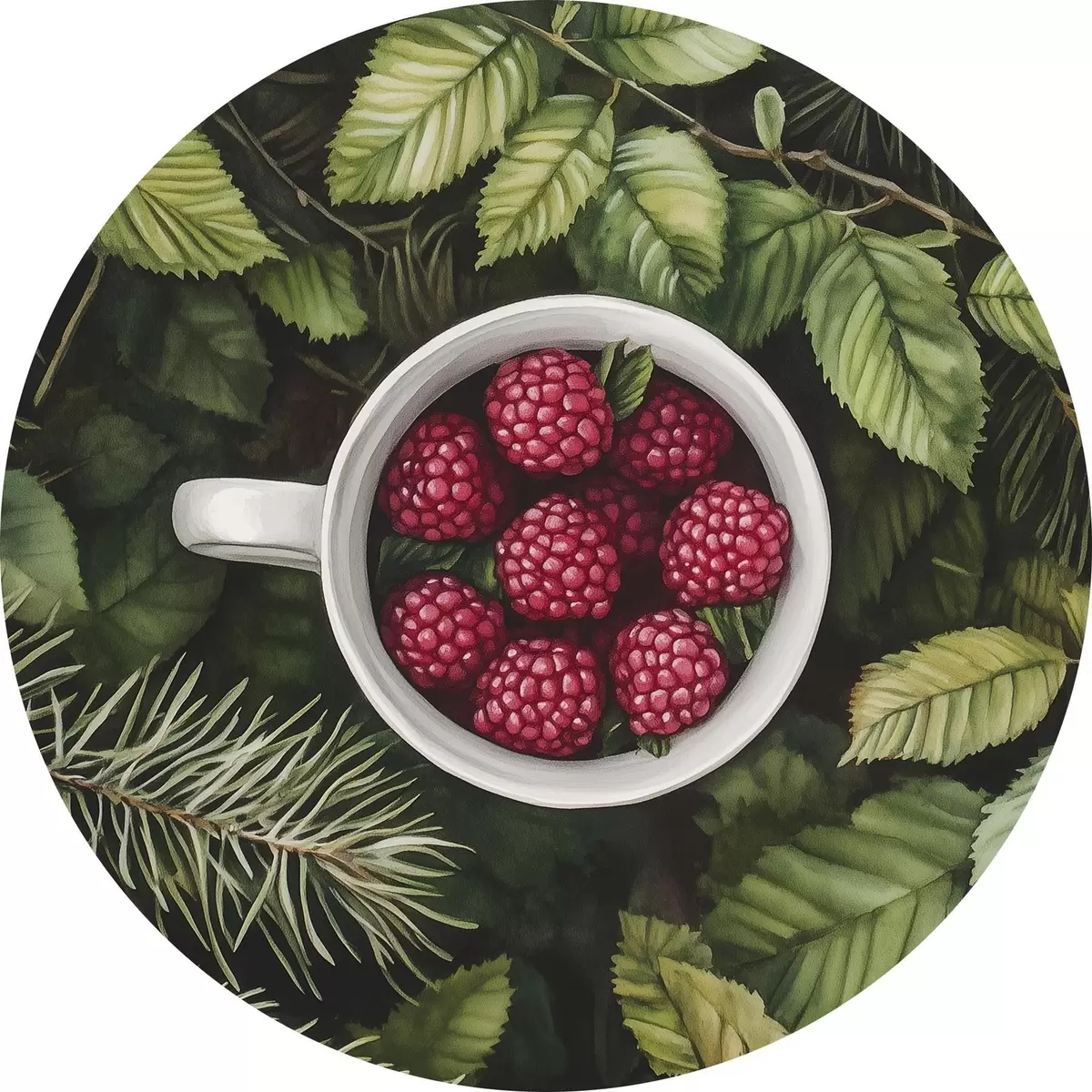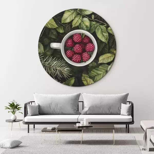 Ronde schilderijen Kopje frambozen in het groene bos, natuur, aquarel stijl r44021