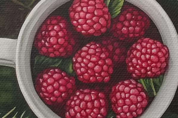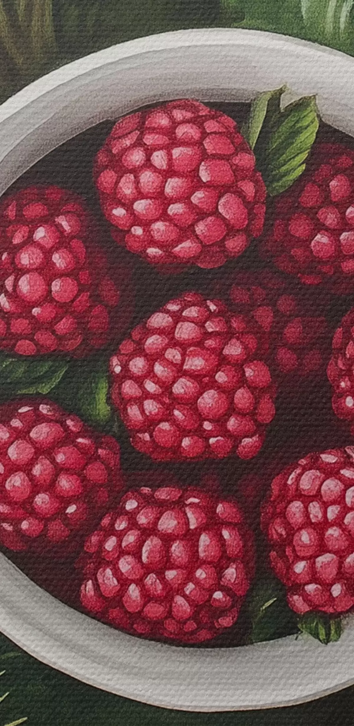 Afbeelding Kopje frambozen in het groene bos, natuur, aquarel stijl Nr r44021