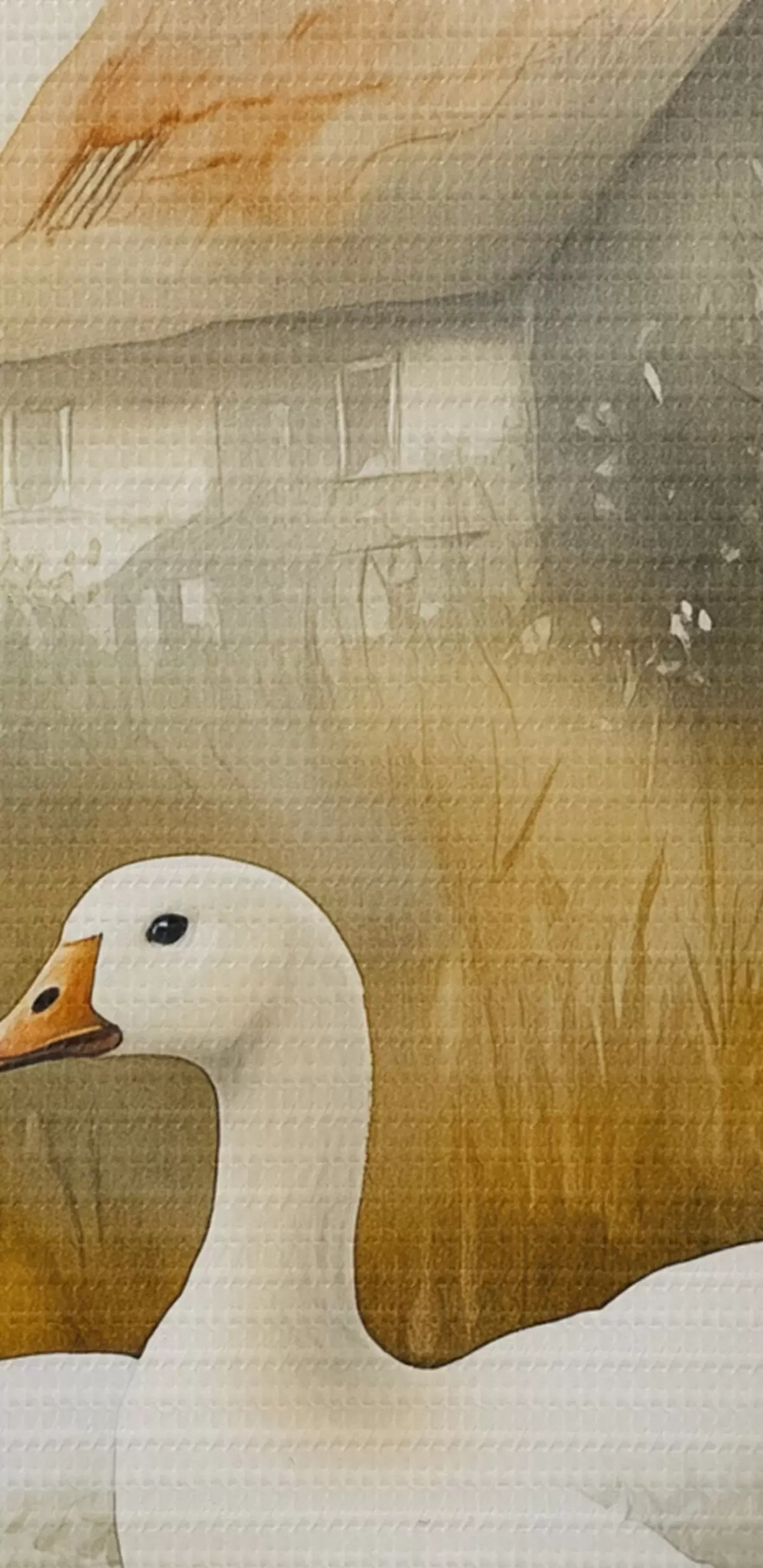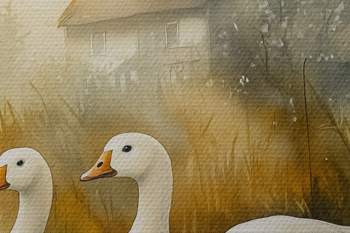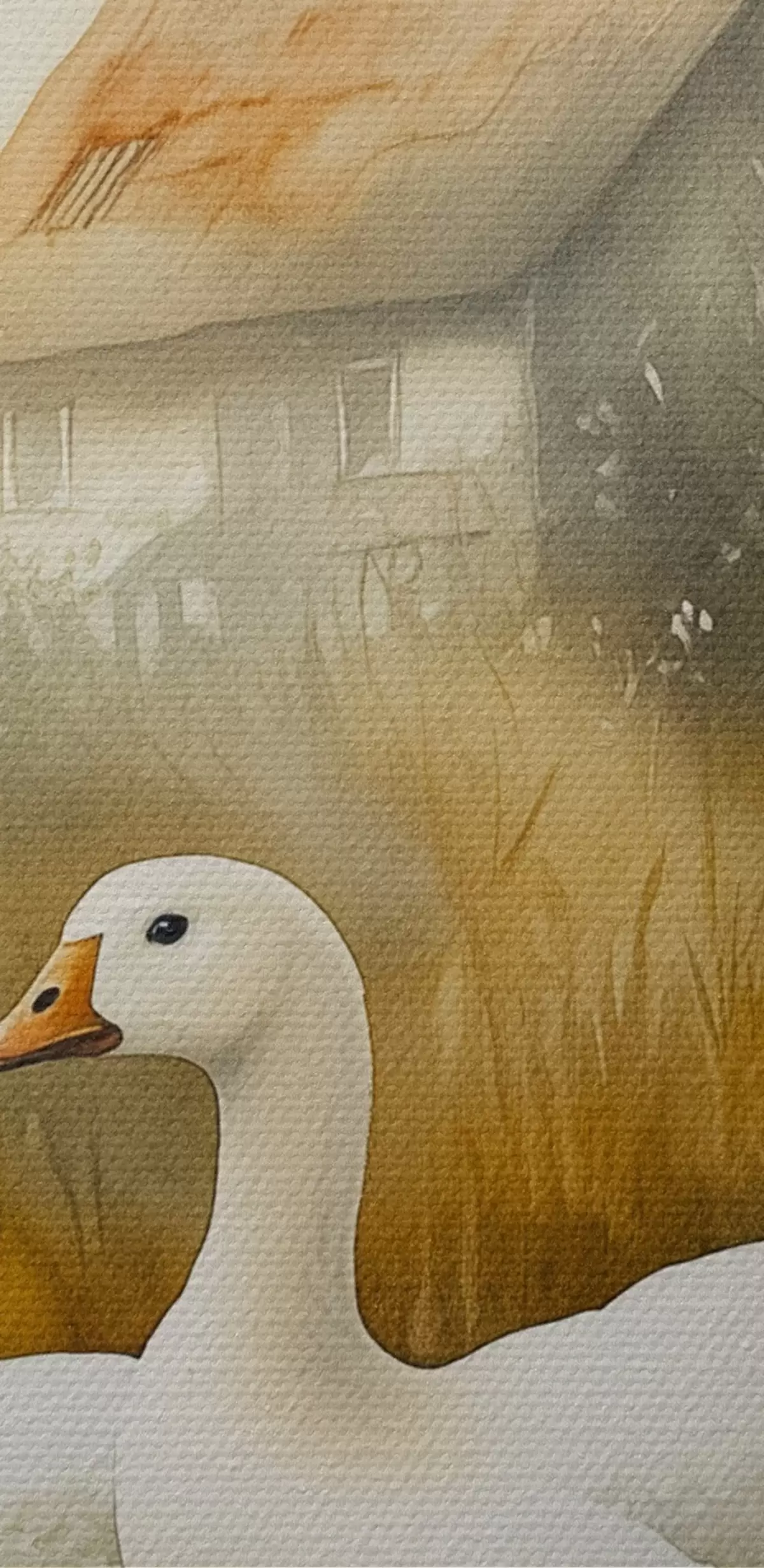 Afbeelding Ganzen in het meer bij boerderij, rustiek, aquarel stijl Nr r44022