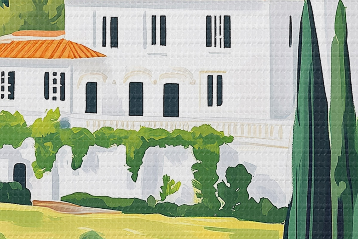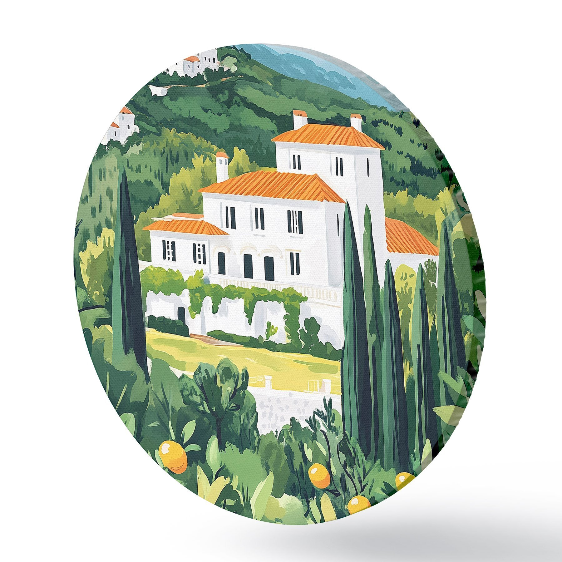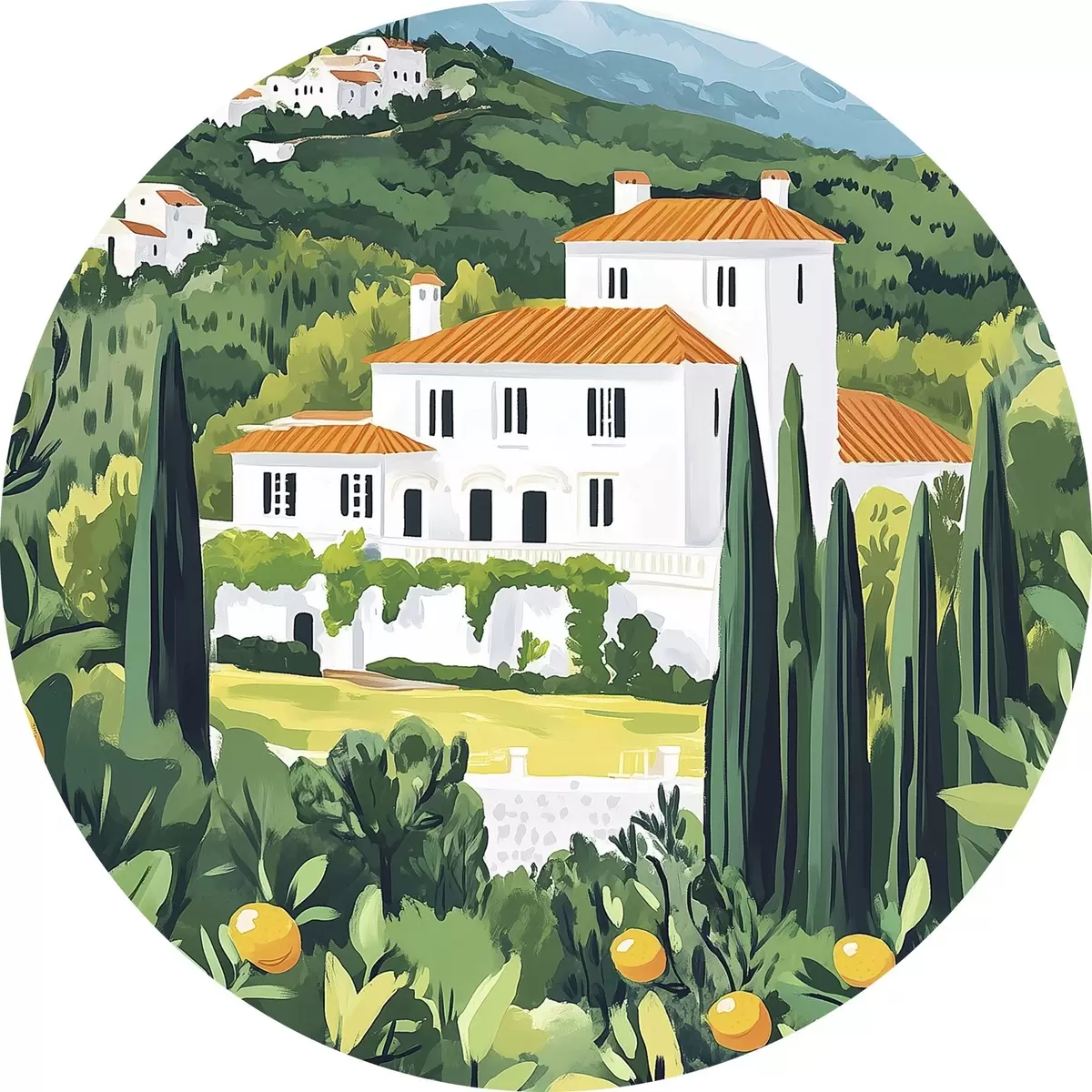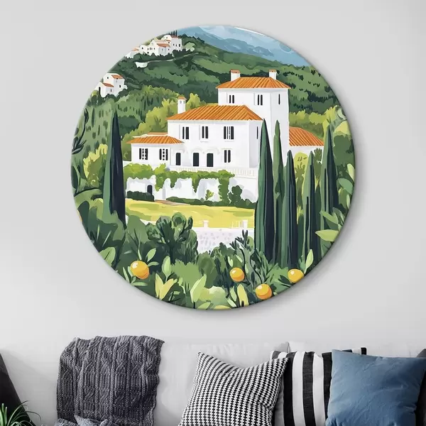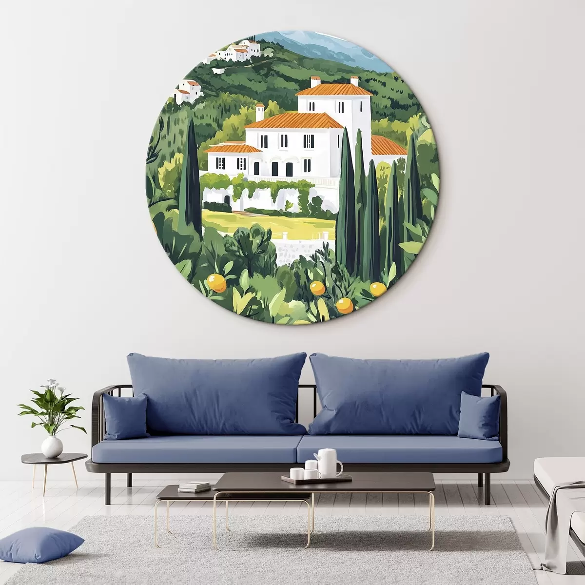 Ronde schilderijen Zomernatuur, mediterraan, citroenbomen, architecturaal r44028