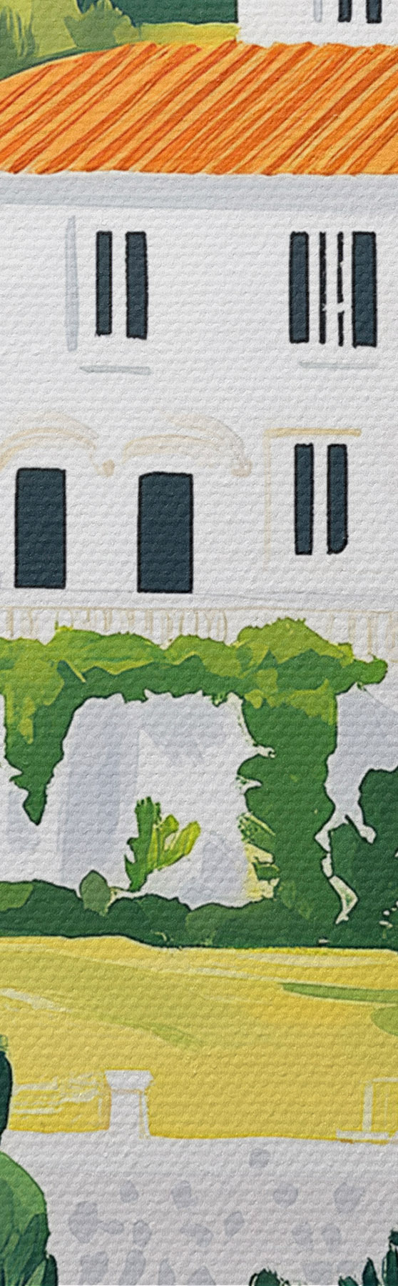 Het schilderij kan voorzichtig worden schoongeveegd met een droge zachte doek of spons; het wordt niet aanbevolen om natte producten te gebruiken. Het gebruik van een vochtige spons is alleen toegestaan als het schilderij gevernist is.