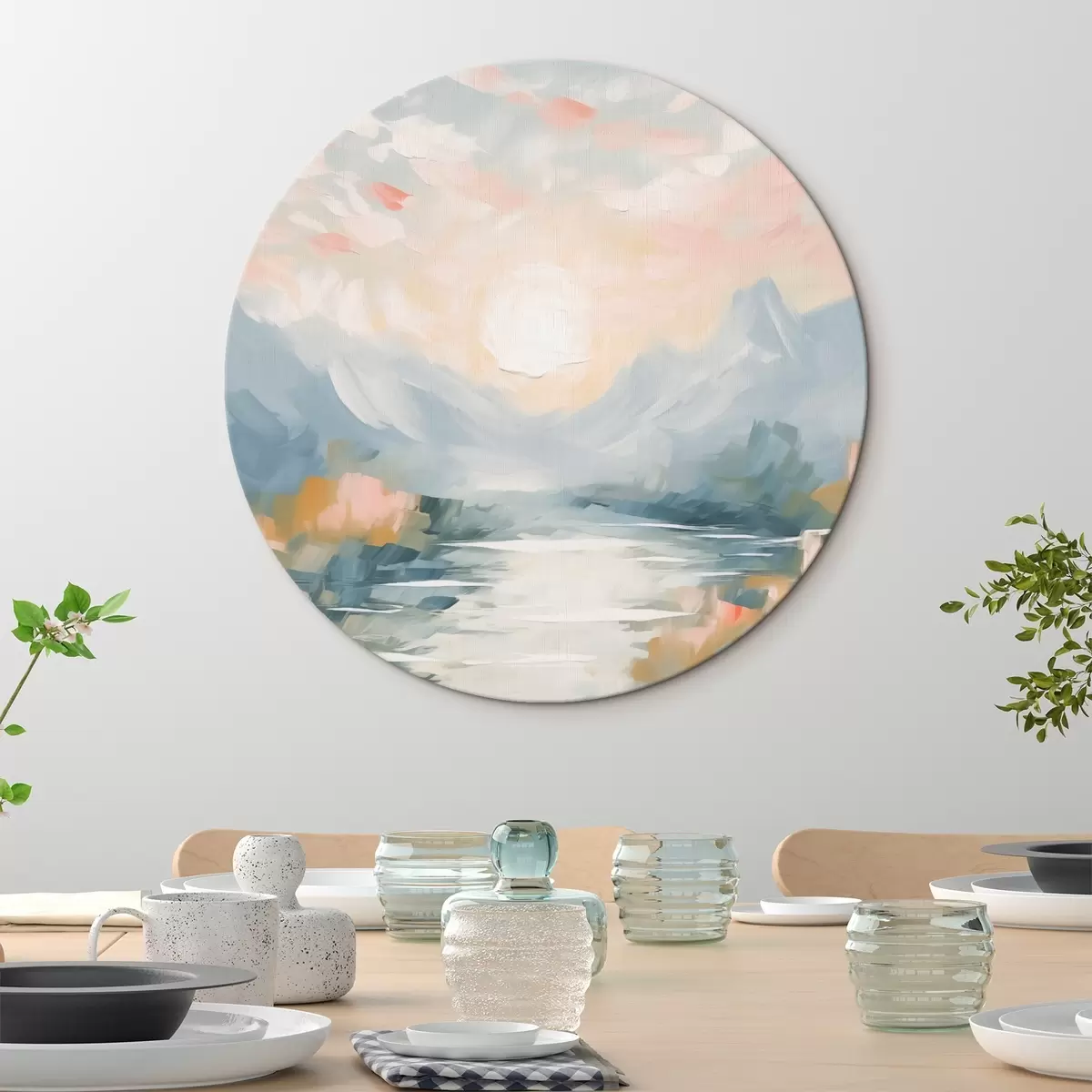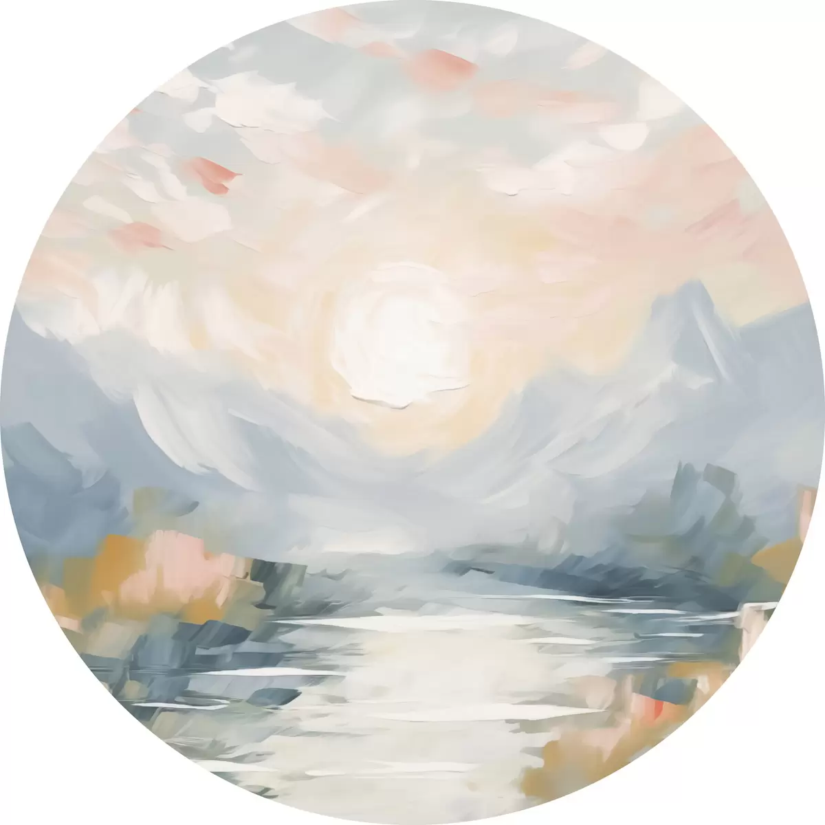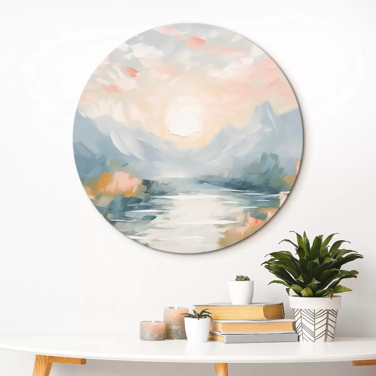 Ronde schilderijen Bergen abstractie r44052