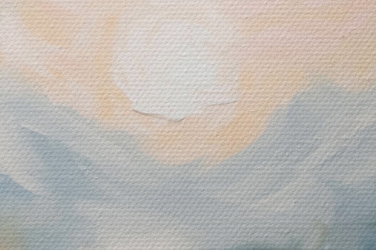 Het schilderij kan voorzichtig worden schoongeveegd met een droge zachte doek of spons; het wordt niet aanbevolen om natte producten te gebruiken. Het gebruik van een vochtige spons is alleen toegestaan als het schilderij gevernist is.