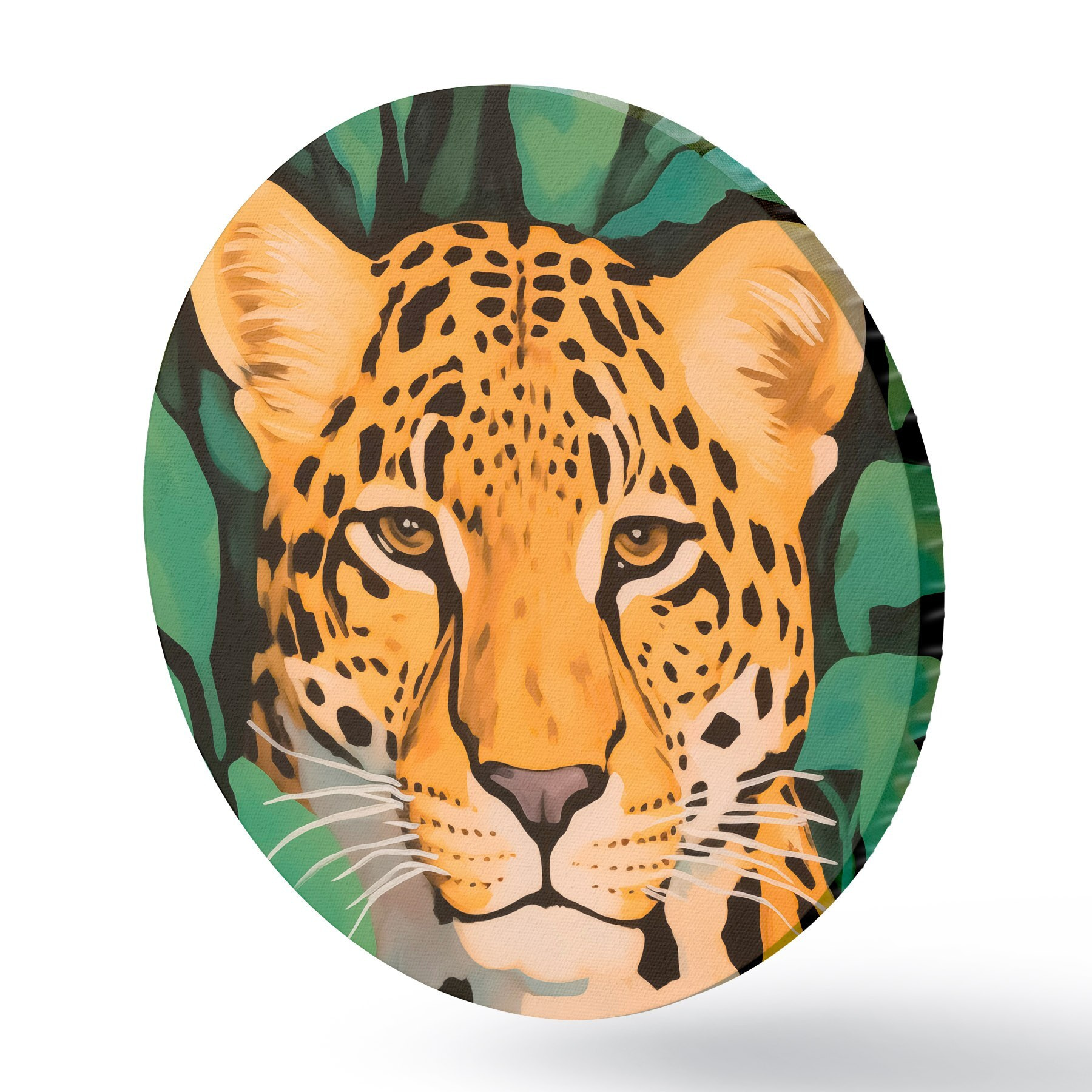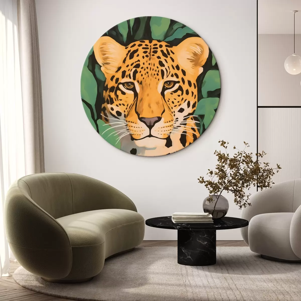 Ronde schilderijen Luipaard in het gebladerte r44053