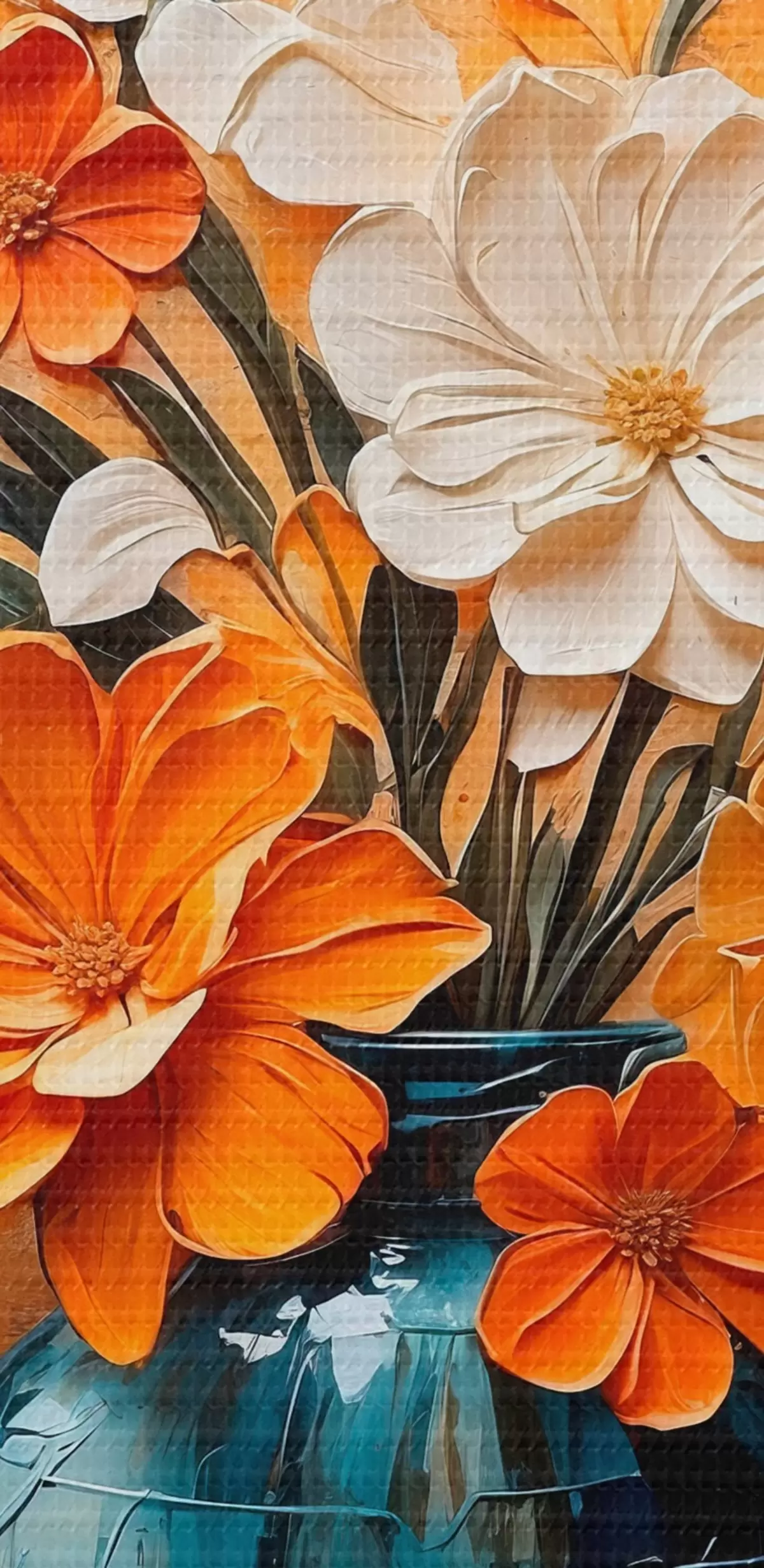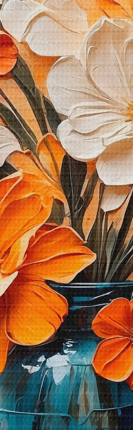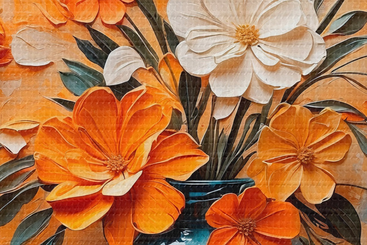 Afbeelding Witte en oranje bloemen in vaas in olieverfschilderijstijl Nr r44059