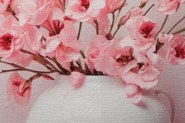 Afbeelding Roze bloemen in witte grote vaas Nr r44081