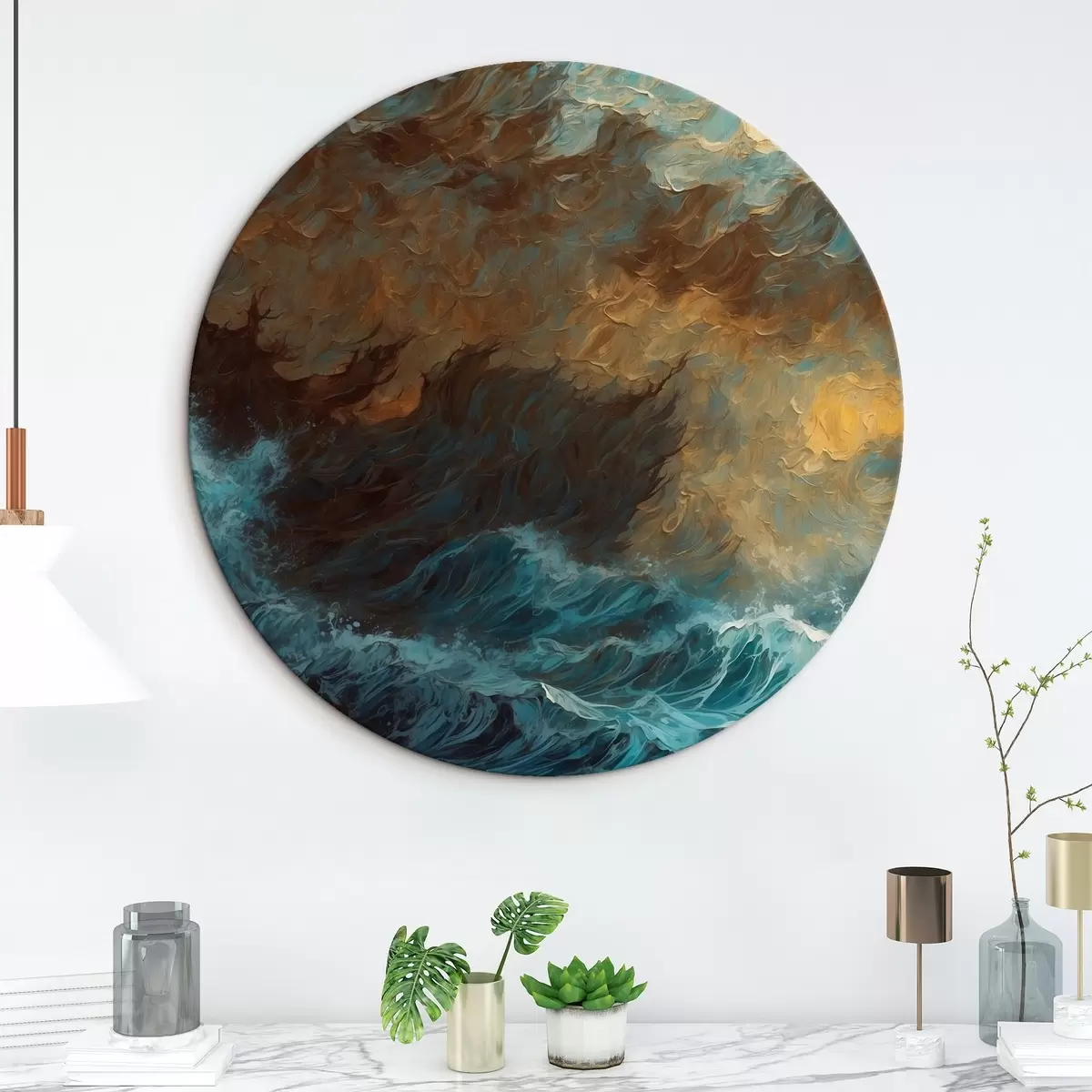 Ronde schilderijen Zeestorm r44086