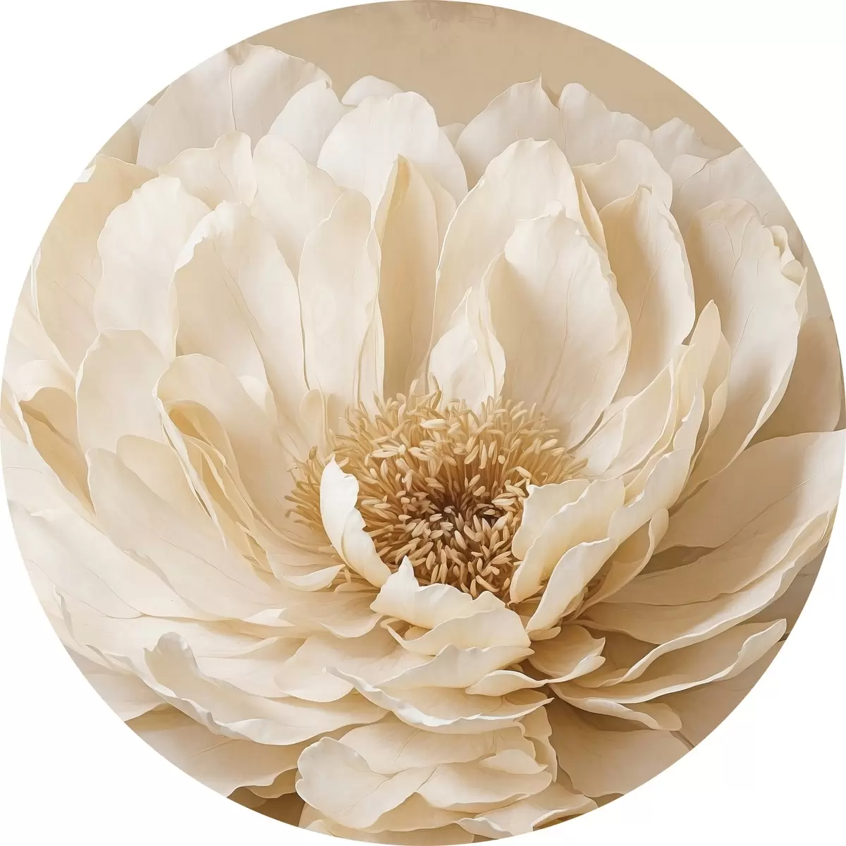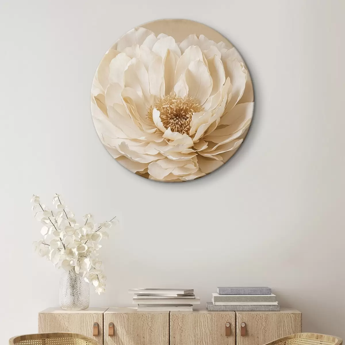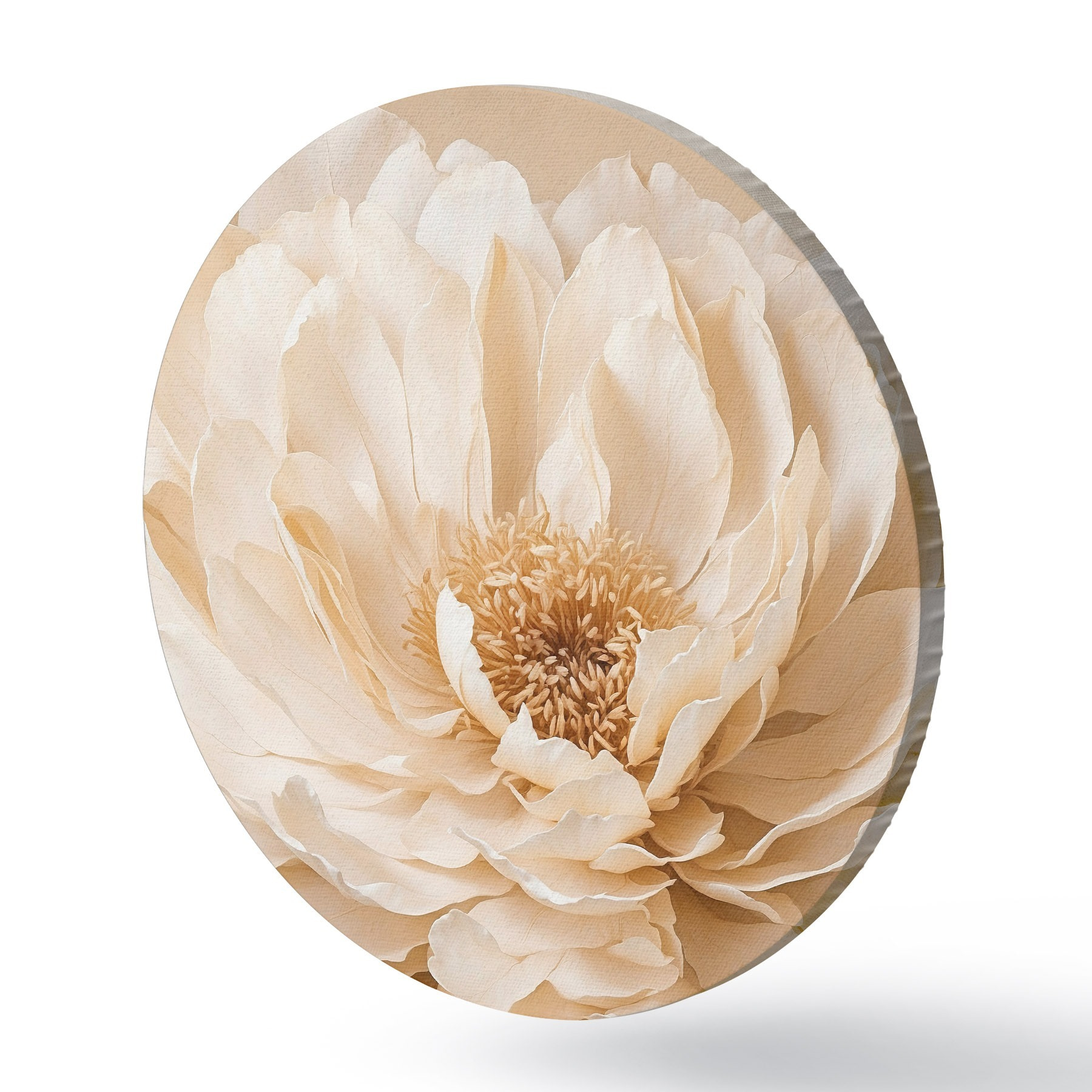 Ronde schilderijen Witte bloem op beige achtergrond r44094