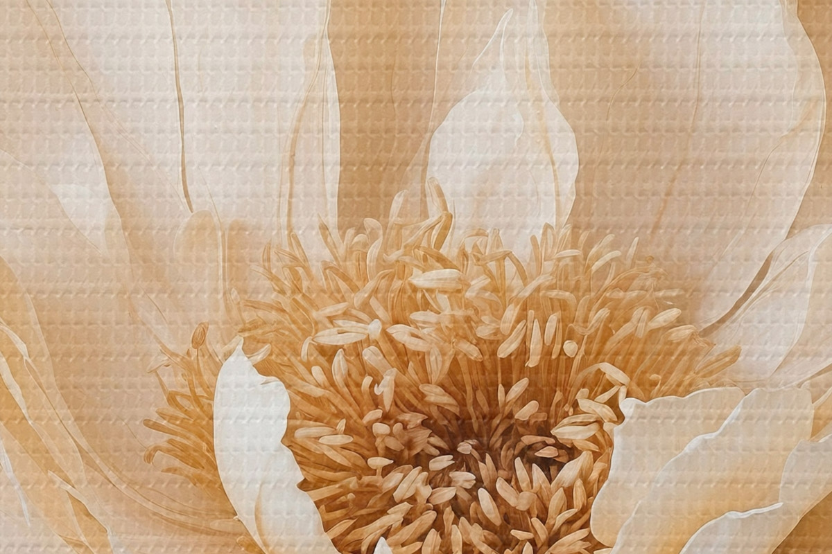 Afbeelding Witte bloem op beige achtergrond Nr r44094