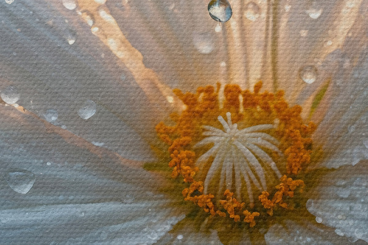 Het is een goedkopere versie van canvas. Het is duurzamer en vochtbestendiger, maar het oppervlak heeft niet zo'n uitgesproken textuur als Premium Canvas