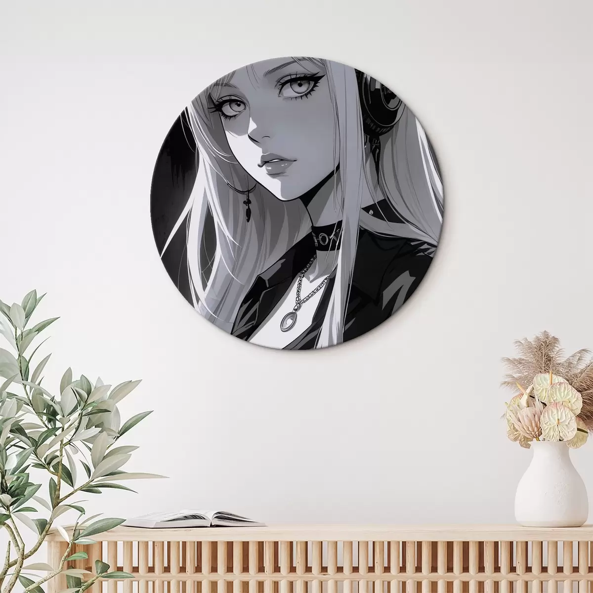 Ronde schilderijen Poster met meisje met koptelefoon r44102