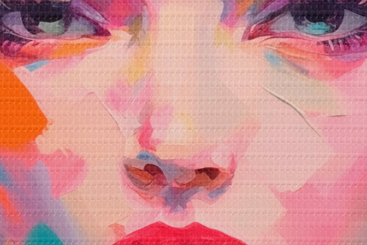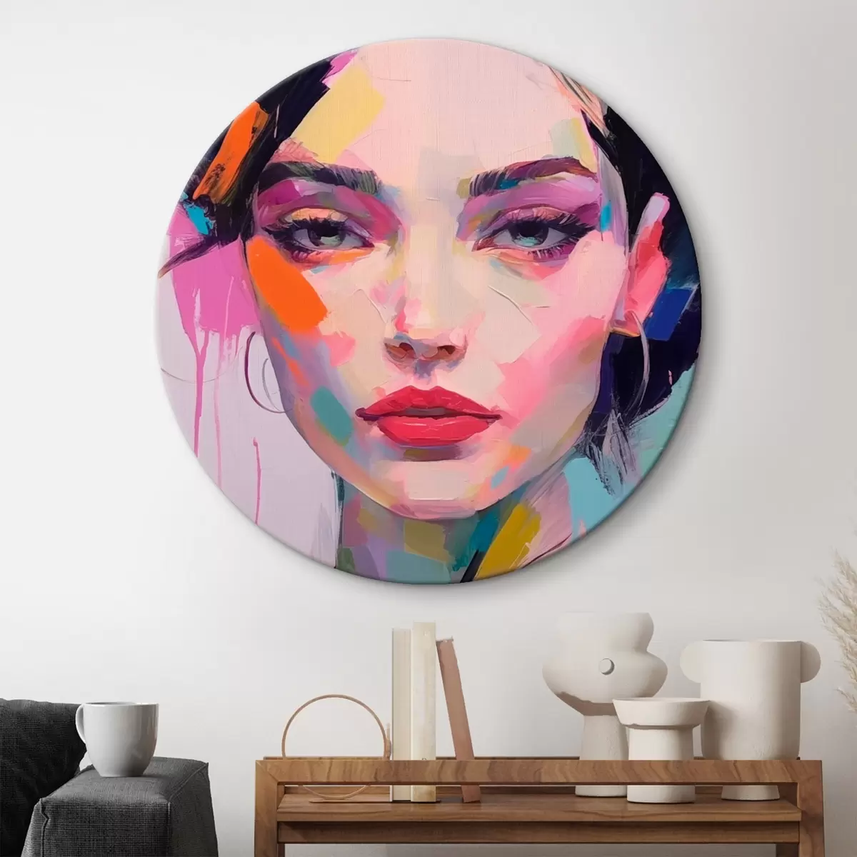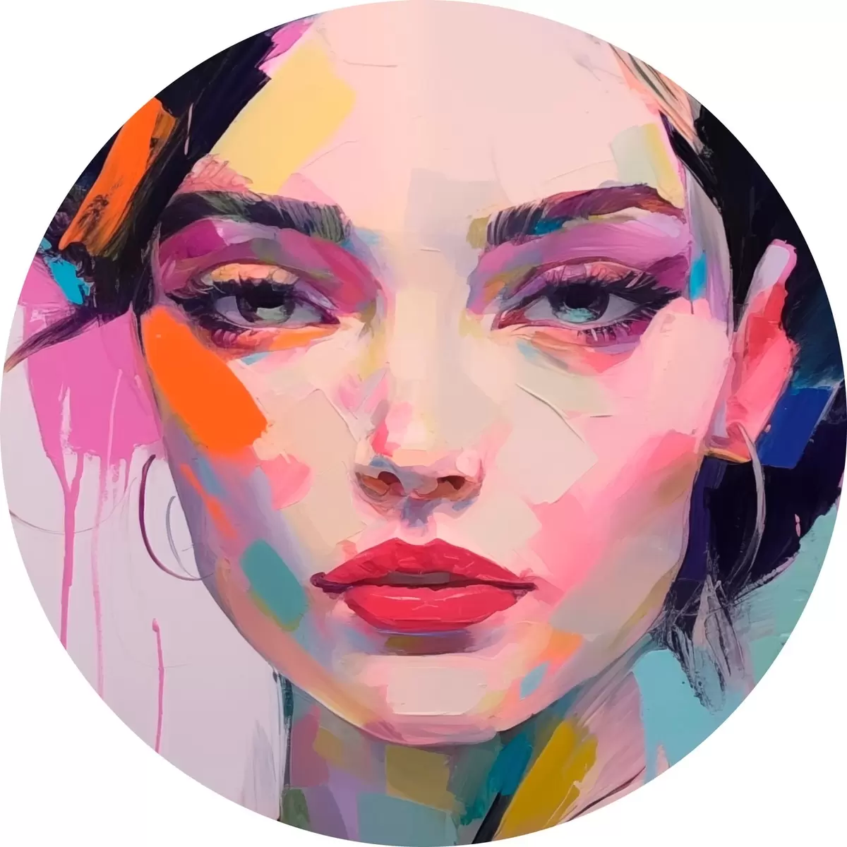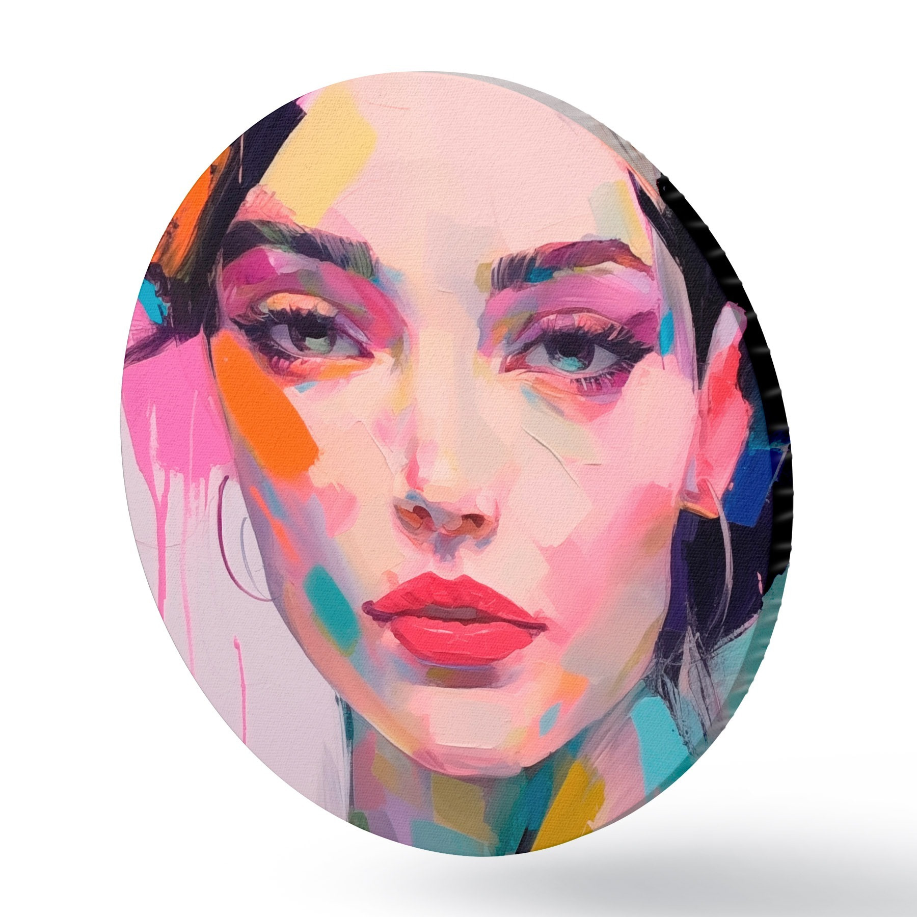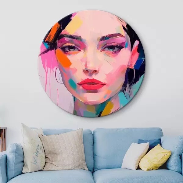 Ronde schilderijen Gezicht in verf r44107