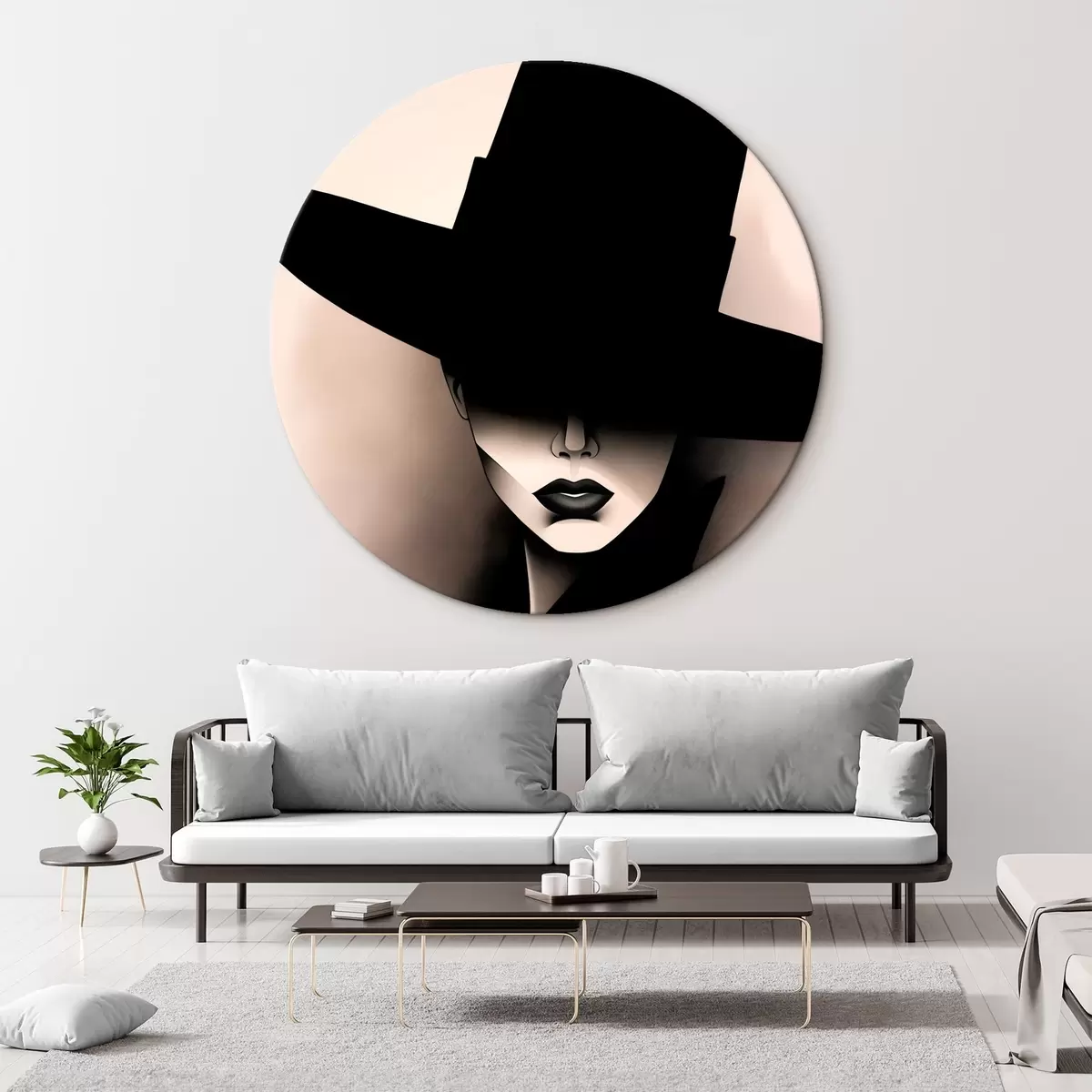 Ronde schilderijen Vrouw met hoed r44108
