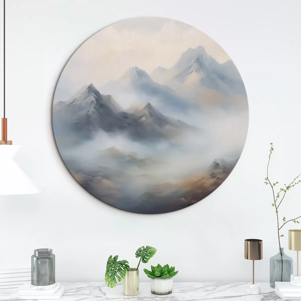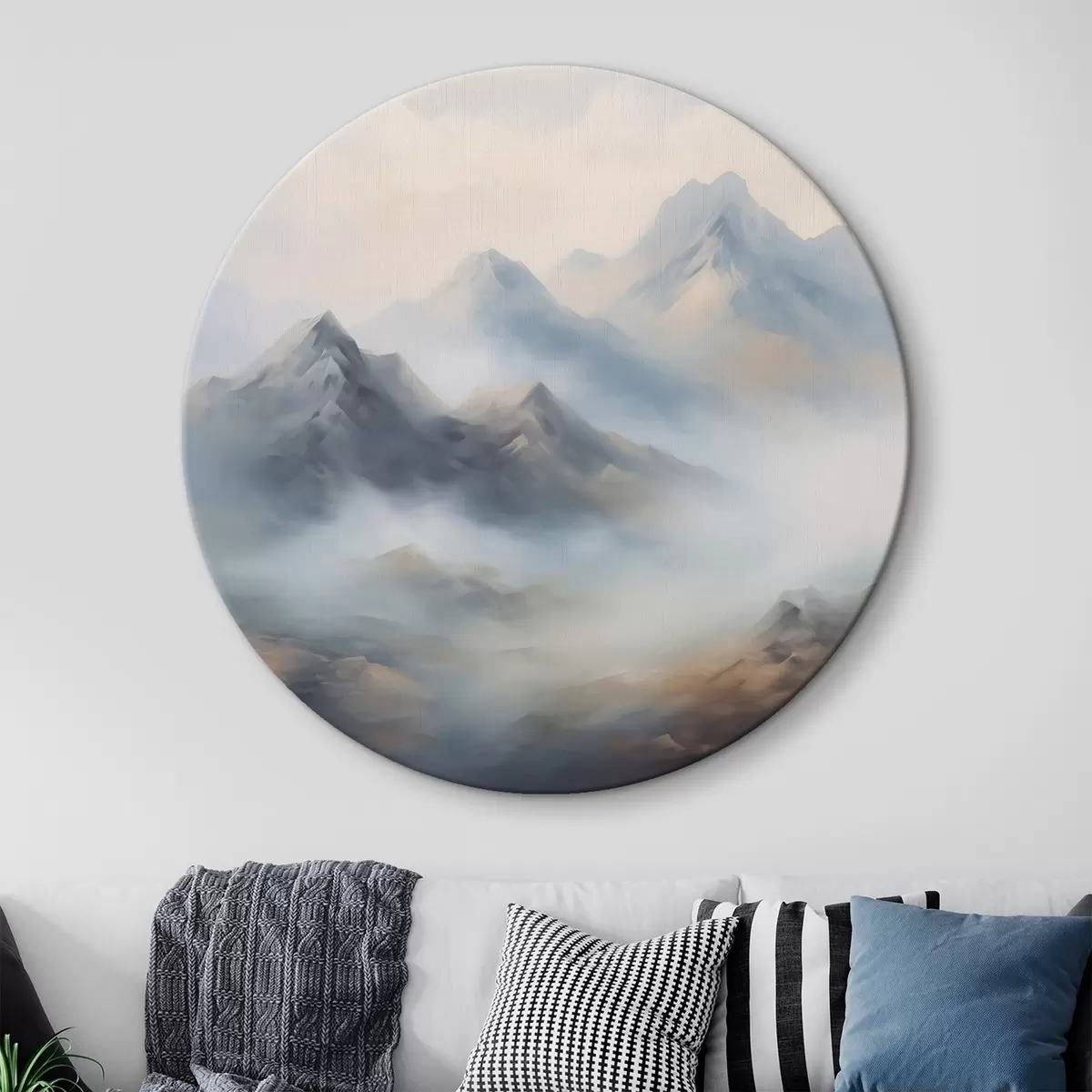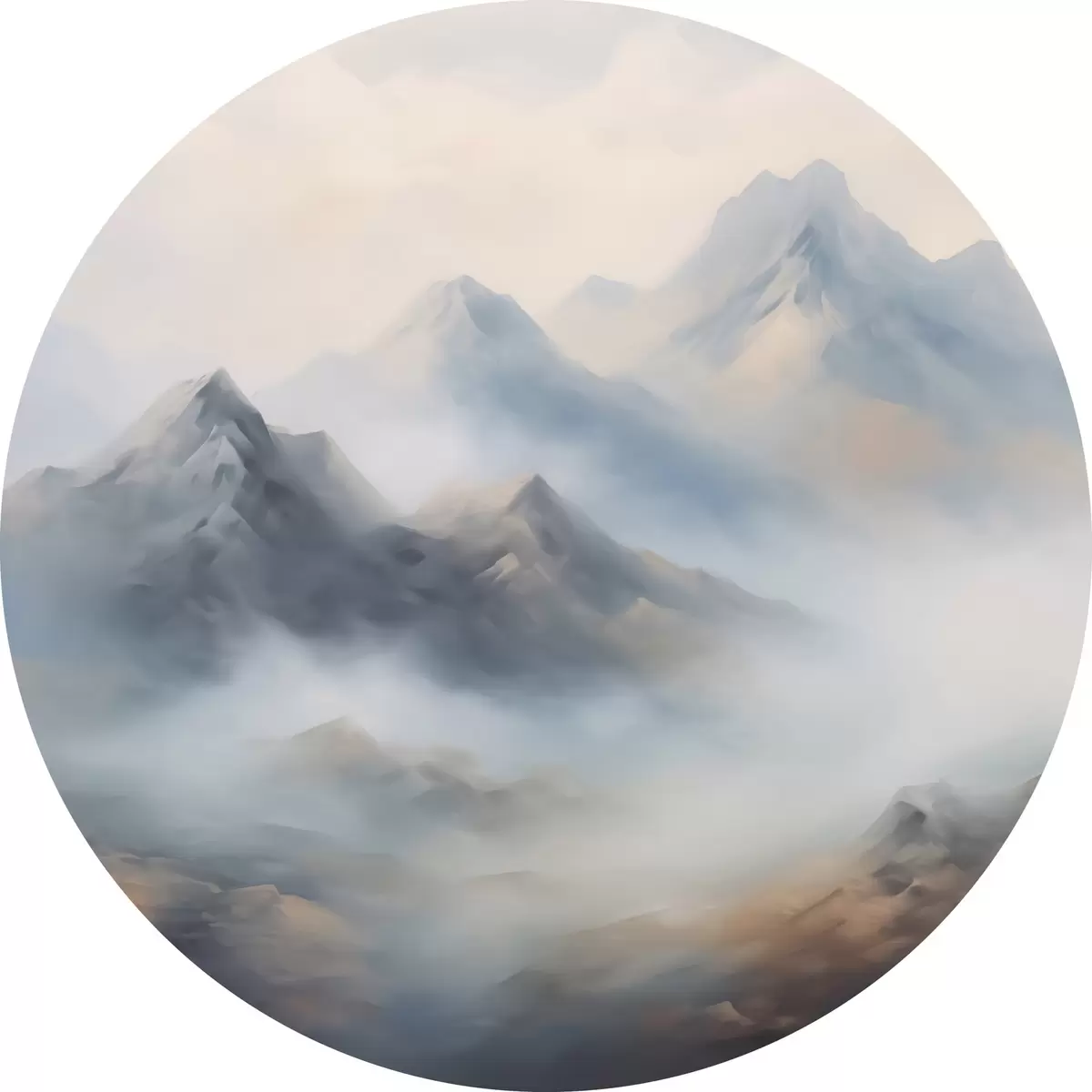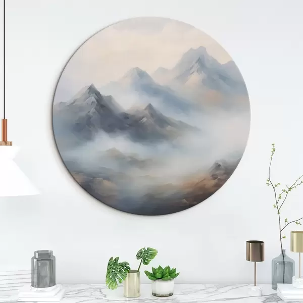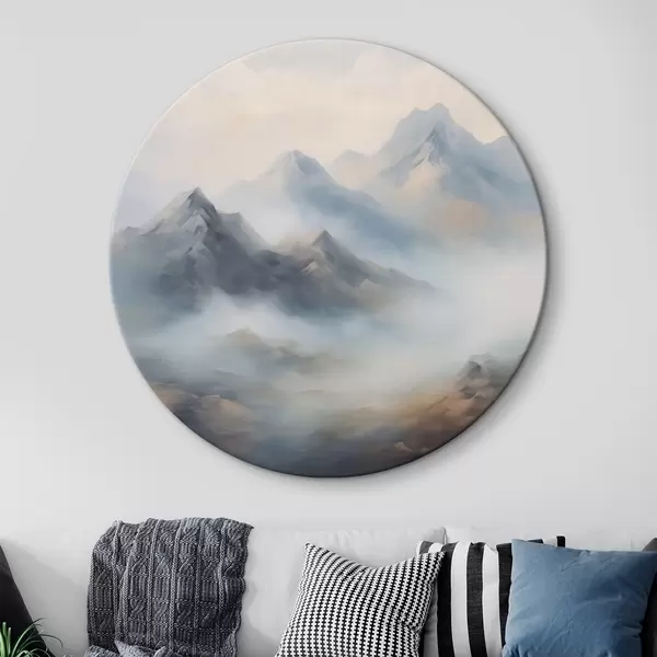 Ronde schilderijen Bergen in mist bij zonsopgang r44121