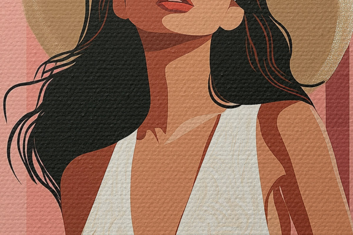 Afbeelding Vrouw met zonnebril en hoed, tropische natuur, architectuur Nr r44152