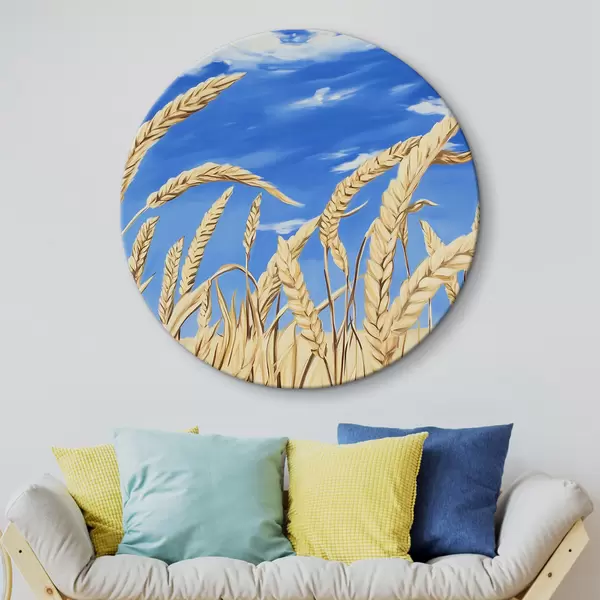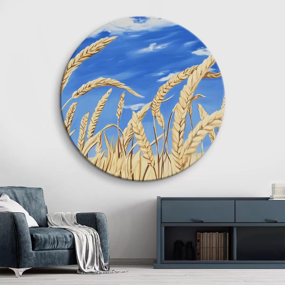 Ronde schilderijen Korenaren onder de blauwe hemel r44212