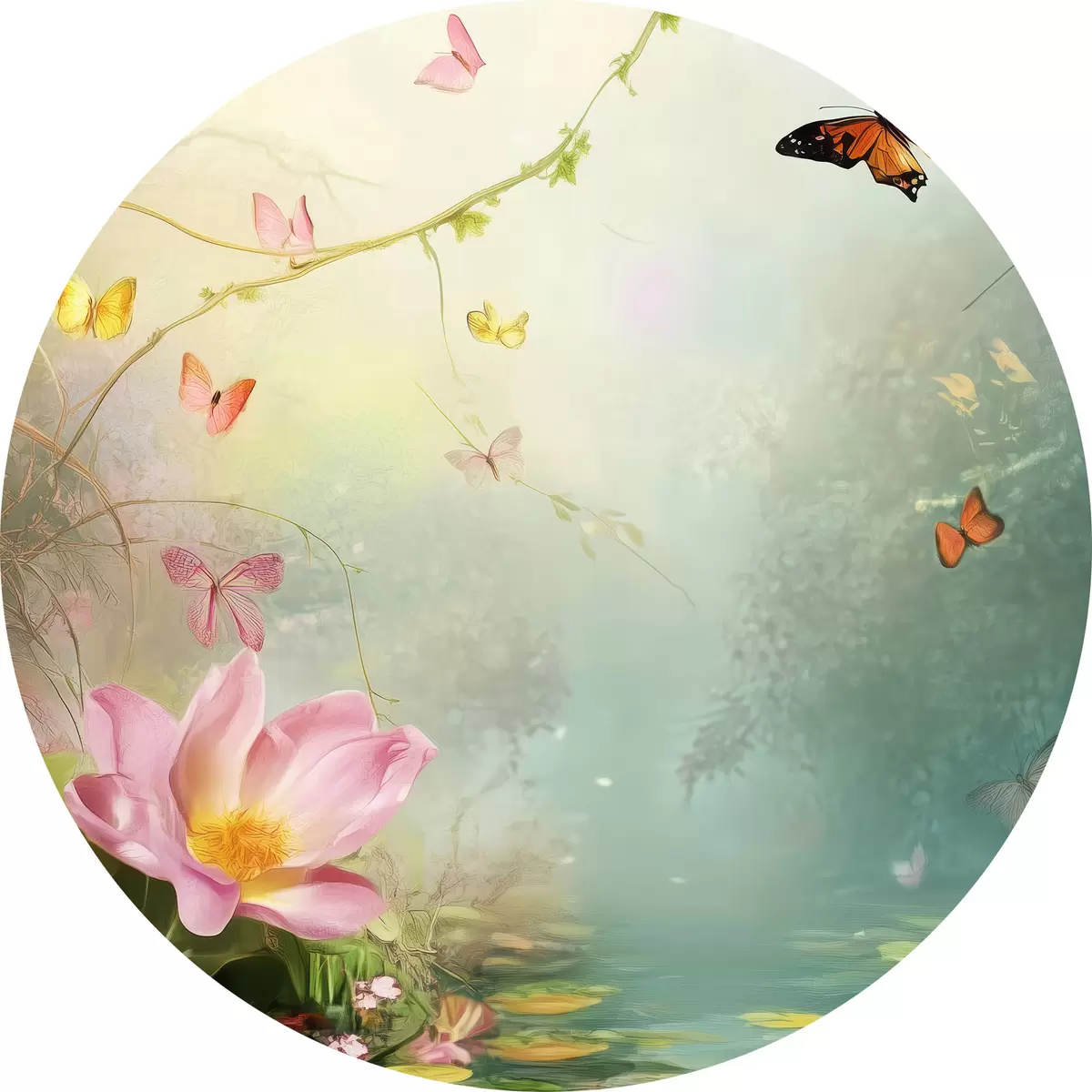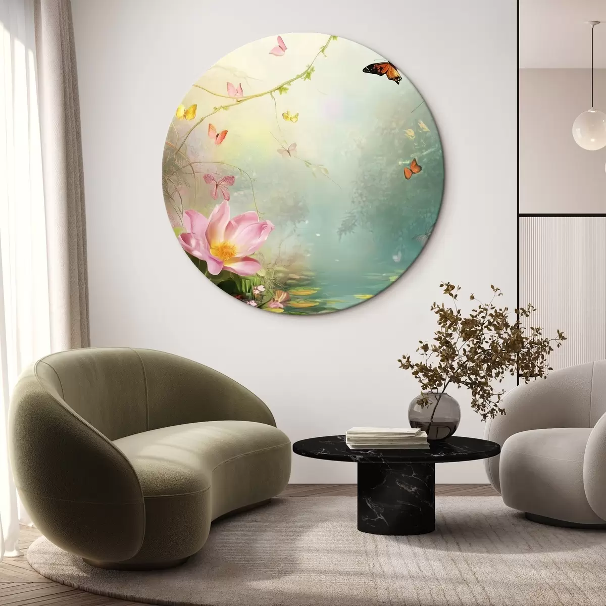 Ronde schilderijen Meer in het bos onder de bomen r44216