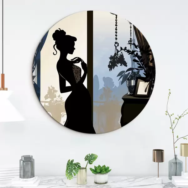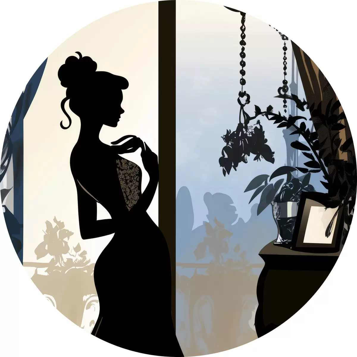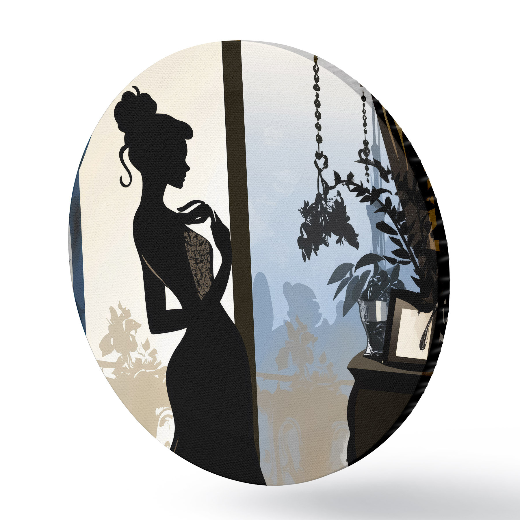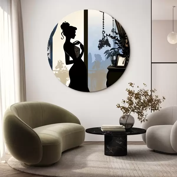 Ronde schilderijen Silhouet van een meisje in een jurk r44227