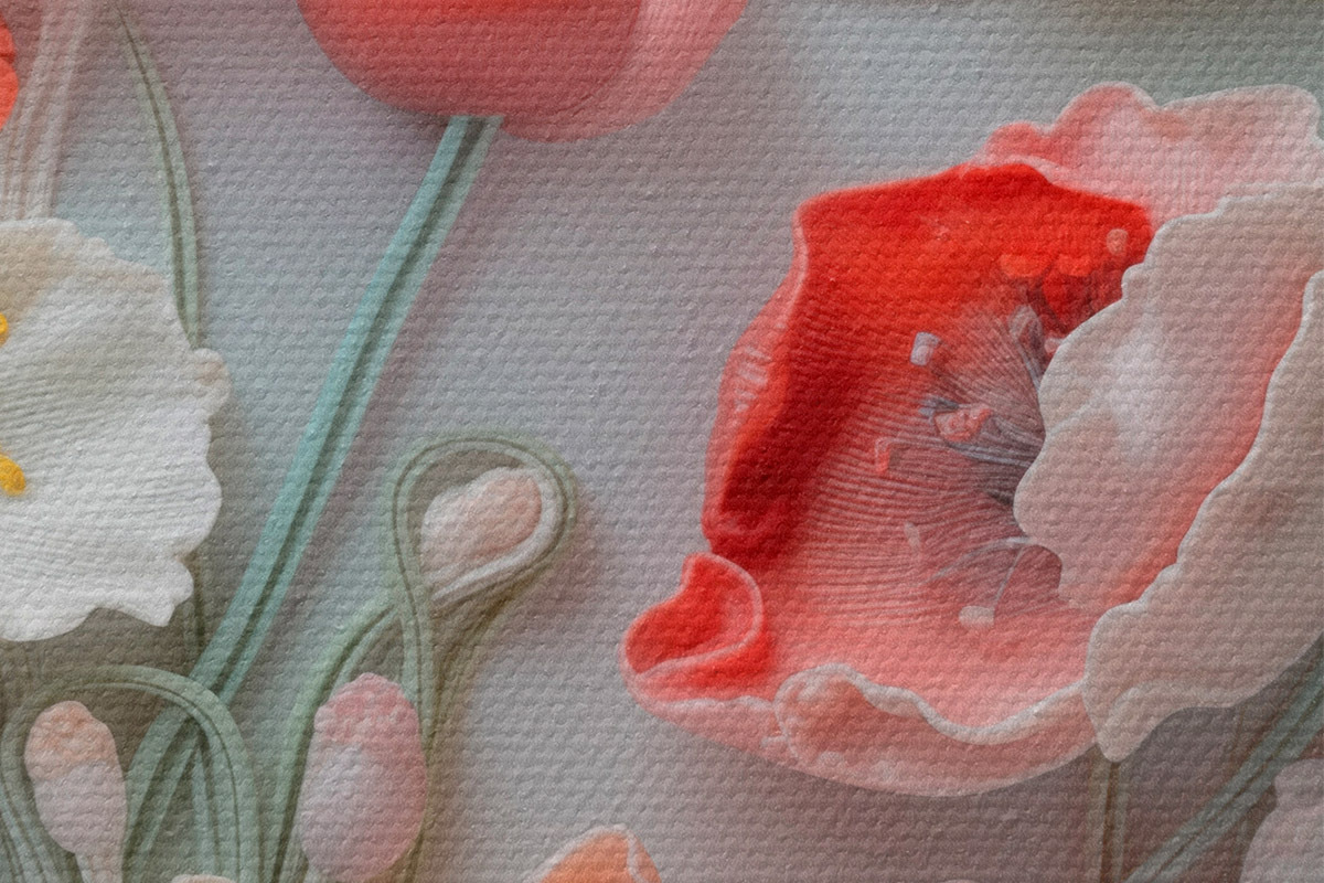 Er zijn drie soorten materiaal te bestellen: Economic Canvas - een dicht en duurzaam materiaal voor digitaal printen, identiek aan schildersdoek, waterdicht oppervlak, realistische weergave van details, materiaal met gemiddelde korrel. Premium Canvas - de textuur lijkt op die van schildersdoek (verweven kleine draden). Zachte, gedetailleerde reproductie van de afbeelding op een mat oppervlak. Eco-Premium - hoogwaardige 100% katoenen stof. Dankzij de natuurlijke katoenvezels is het materiaal duurzaam en slijtvast. Uitstekende kleurweergave en detail.