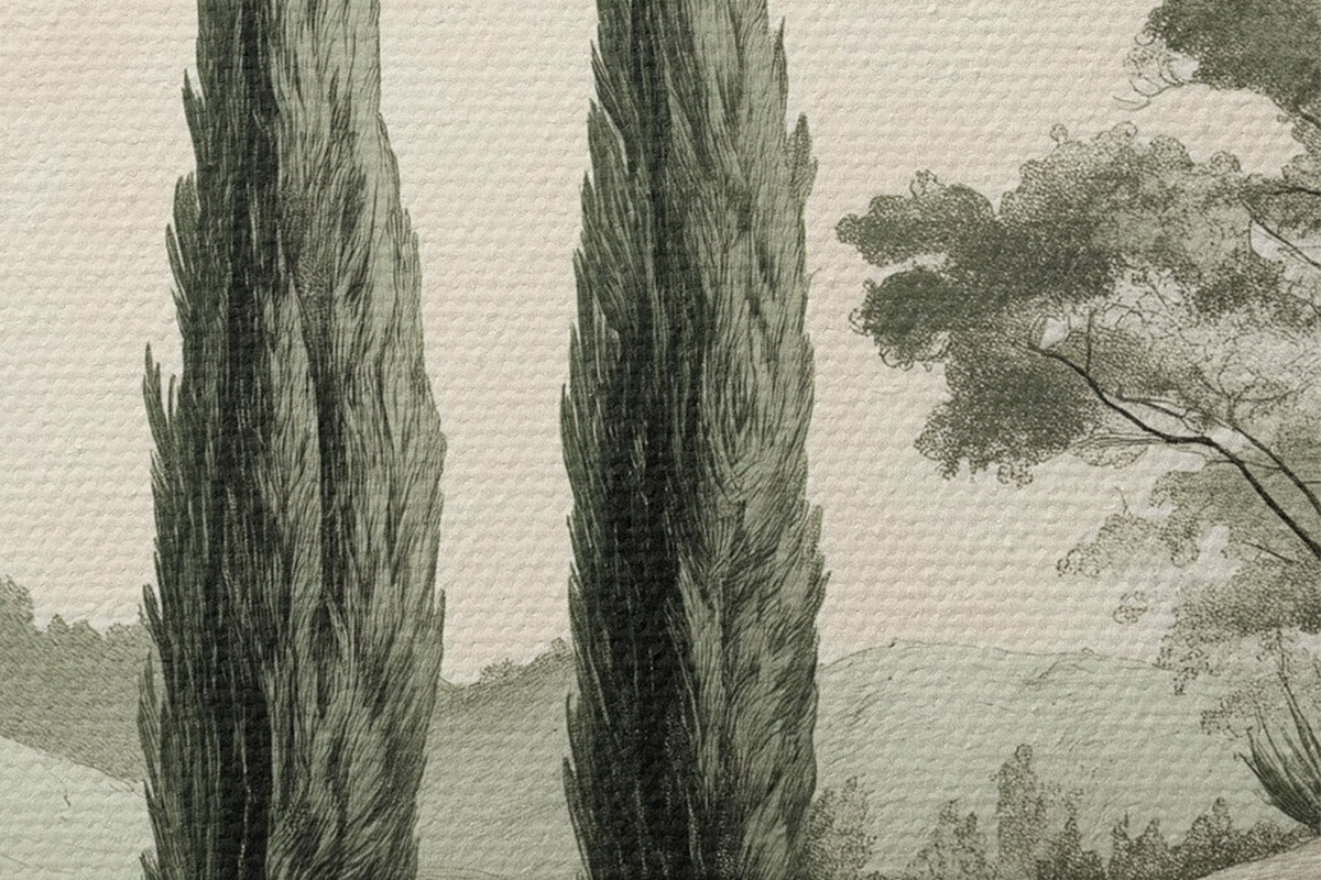 Afbeelding Toscaanse landschappen, pastelkleuren, cipressen, rotsen, rustieke stijl Nr r44307