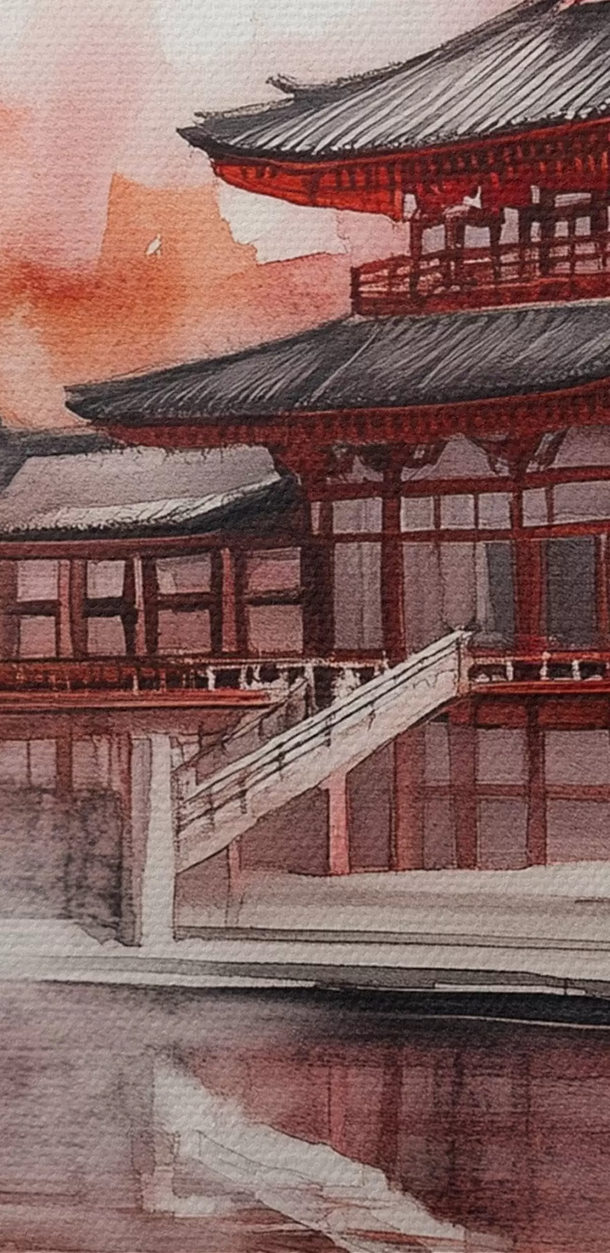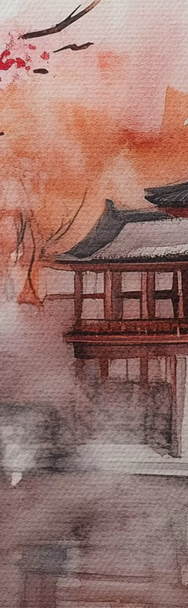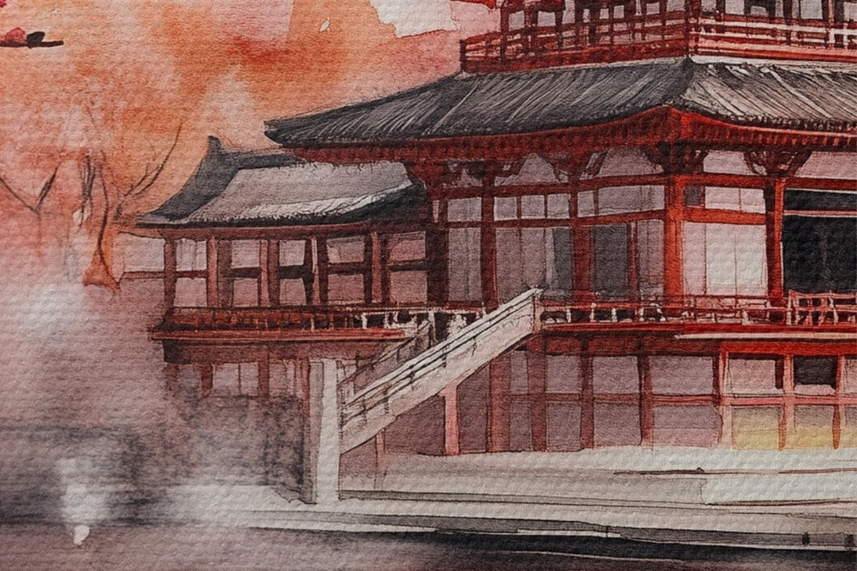 Afbeelding Prachtig Japans landschap met bloeiende kersenboom en huis aan het meer Nr r44310