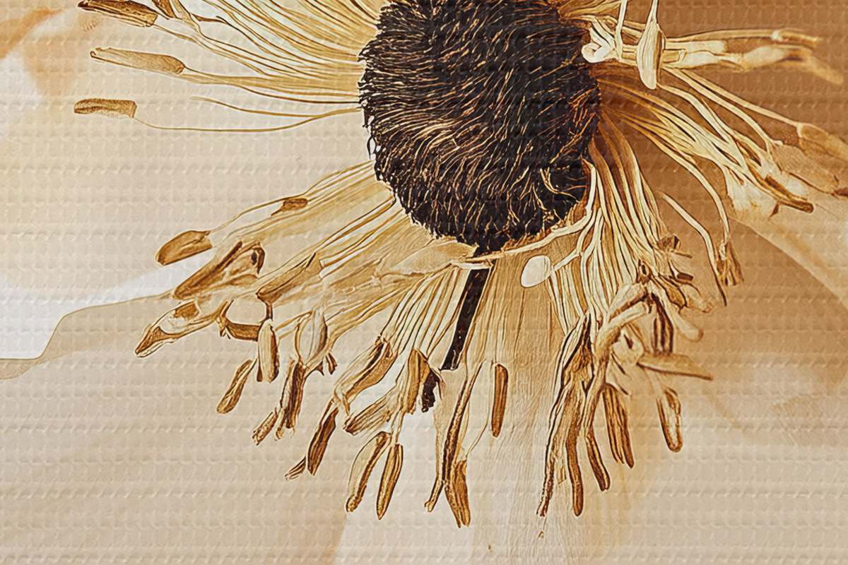 De fijne weving van draden op dit doek lijkt op het oppervlak van professionele schildersdoeken.