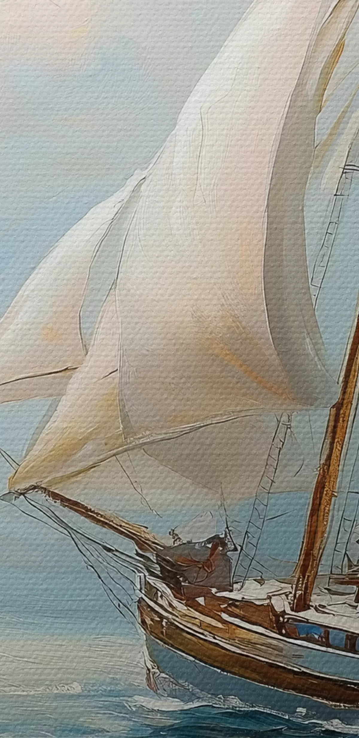 Afbeelding Boot op zee en grote bloemen Nr r44330