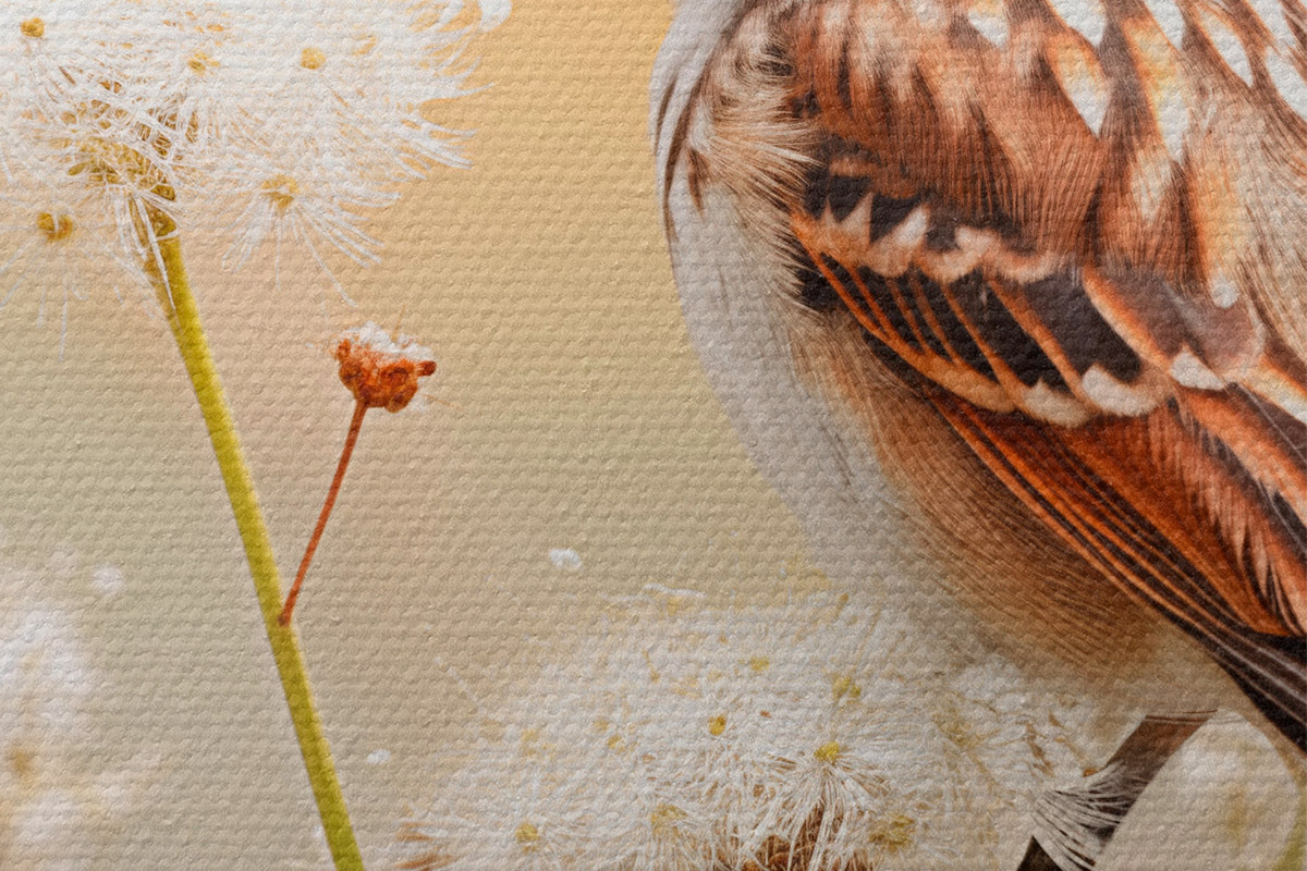 Er zijn drie soorten materiaal te bestellen: Economic Canvas - een dicht en duurzaam materiaal voor digitaal printen, identiek aan schildersdoek, waterdicht oppervlak, realistische weergave van details, materiaal met gemiddelde korrel. Premium Canvas - de textuur lijkt op die van schildersdoek (verweven kleine draden). Zachte, gedetailleerde reproductie van de afbeelding op een mat oppervlak. Eco-Premium - hoogwaardige 100% katoenen stof. Dankzij de natuurlijke katoenvezels is het materiaal duurzaam en slijtvast. Uitstekende kleurweergave en detail.