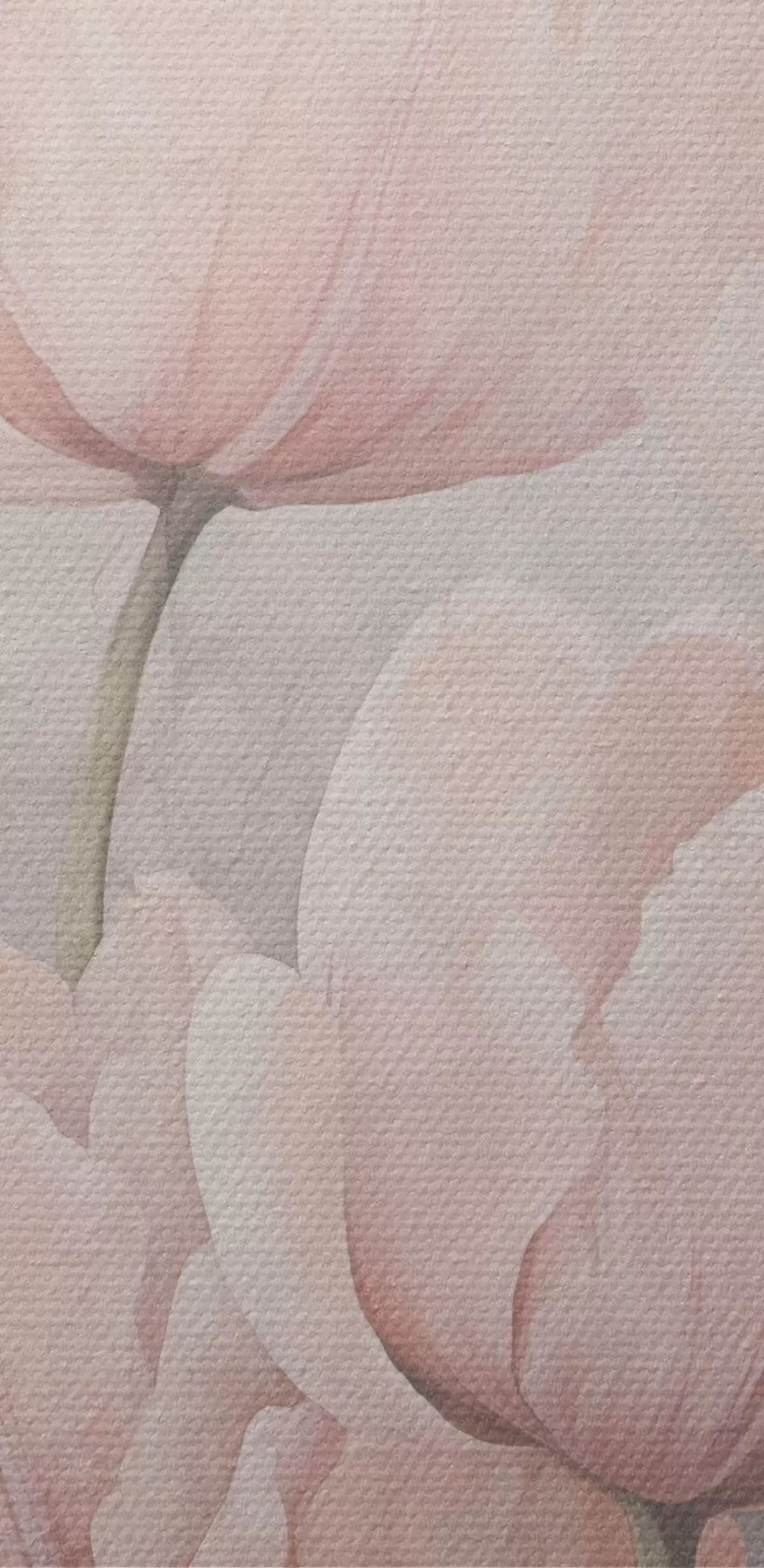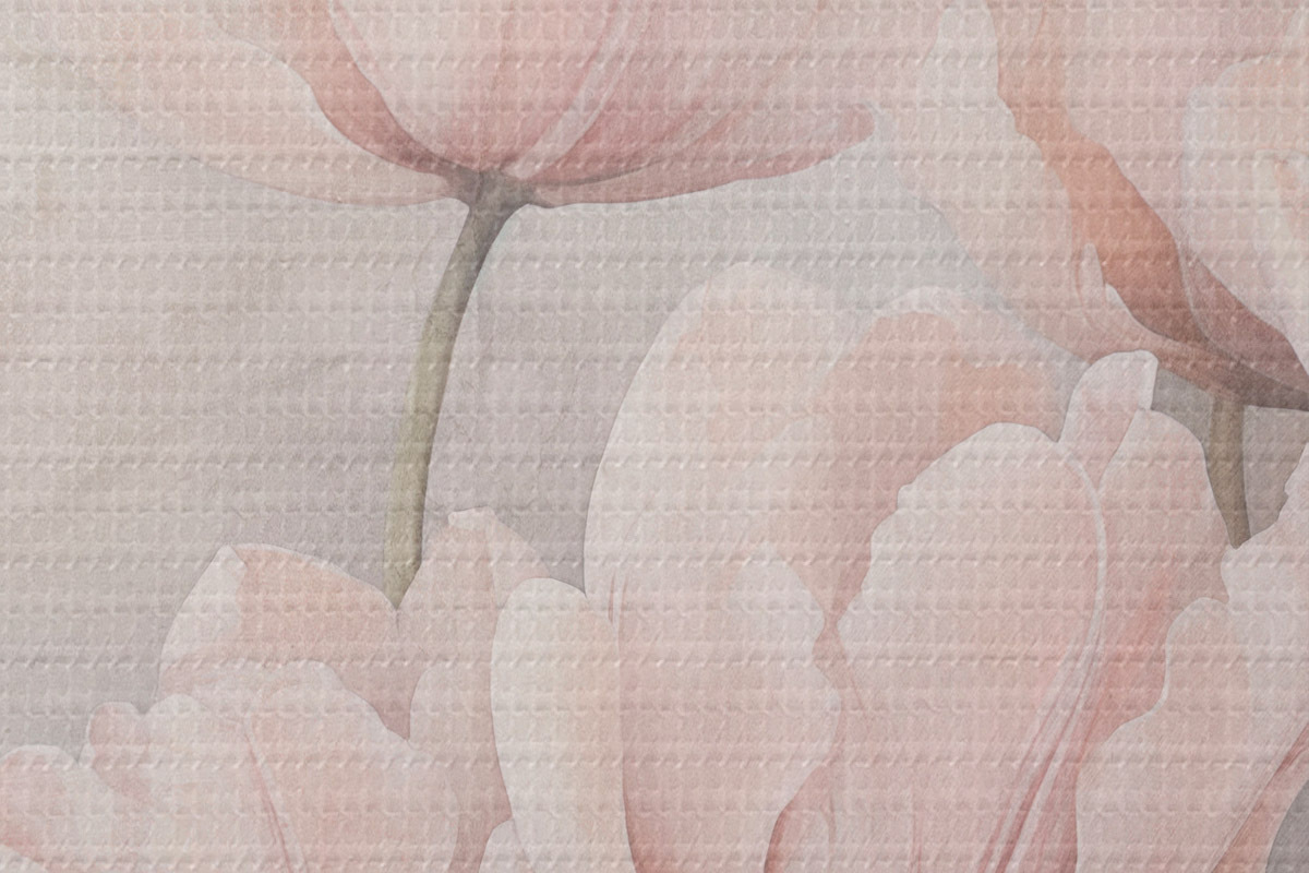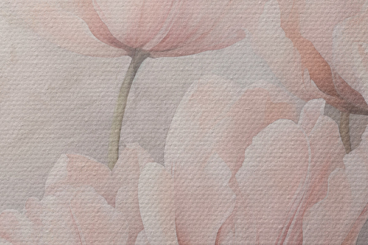 Afbeelding Vintage roze tulpen met lange stelen, zachte gedempte kleuren, lichtgrijze achtergrond Nr r44407