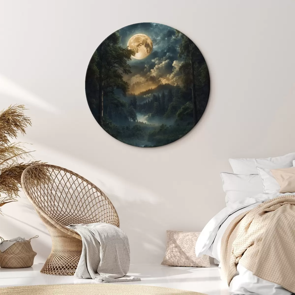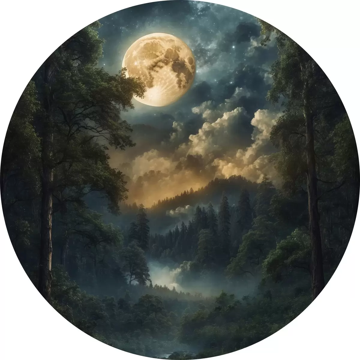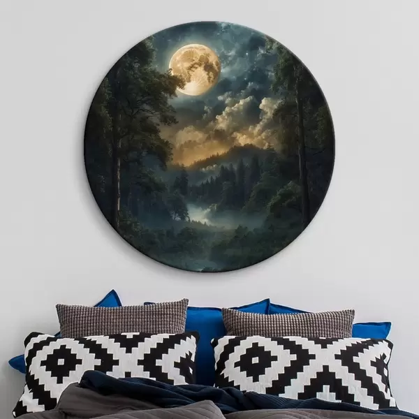 Ronde schilderijen Volle maan in bos r44454