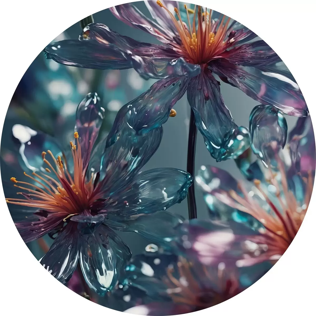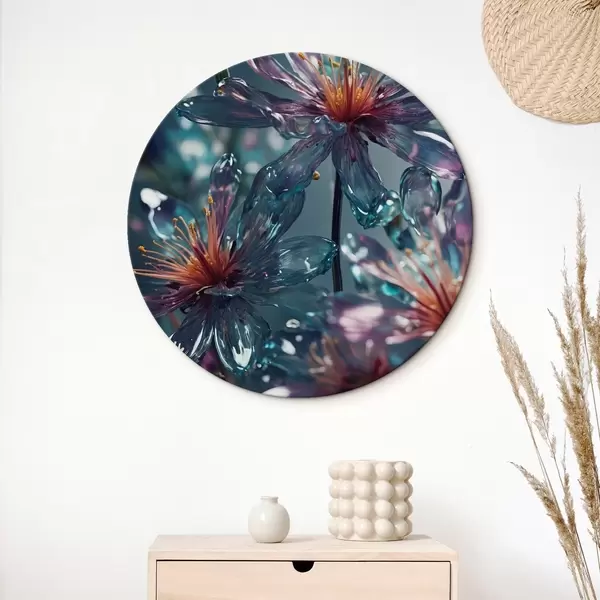 Ronde schilderijen Transparante bloemen op wazige achtergrond r44469