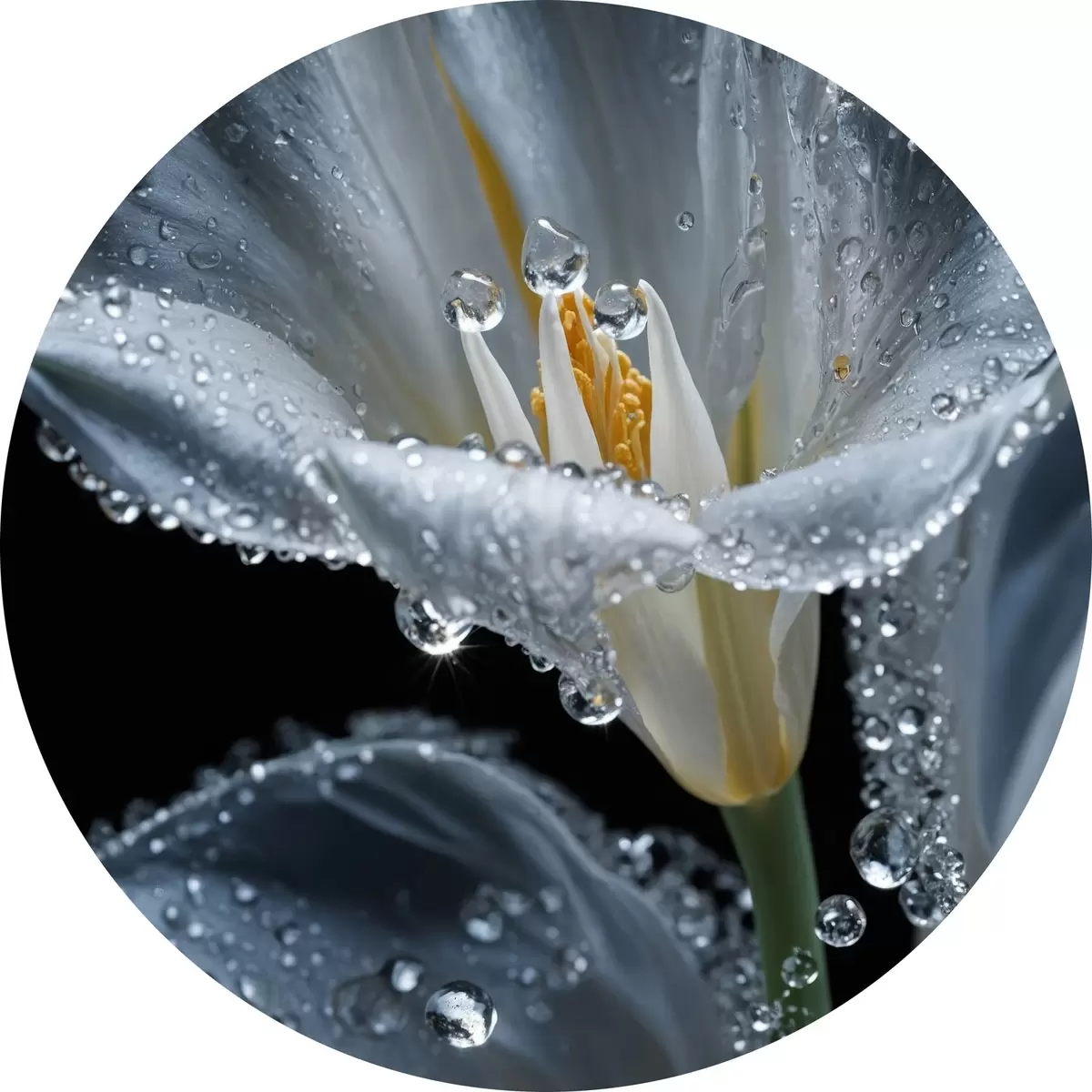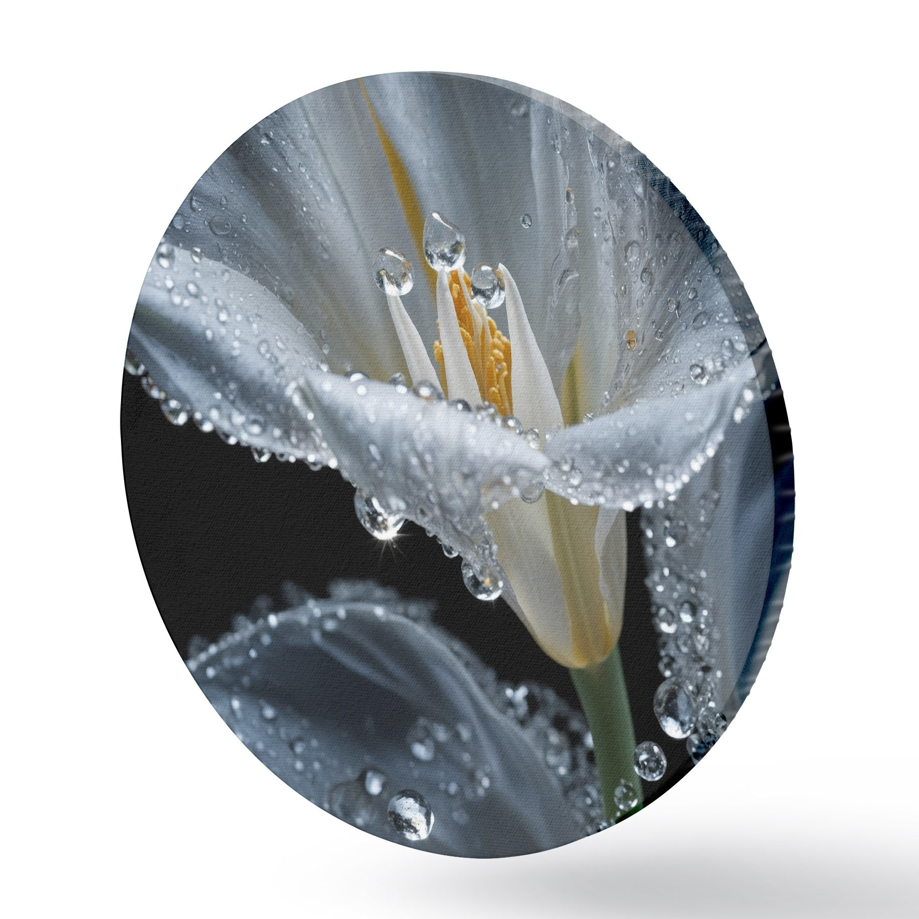 Ronde schilderijen Transparante bloem op zwarte achtergrond r44479