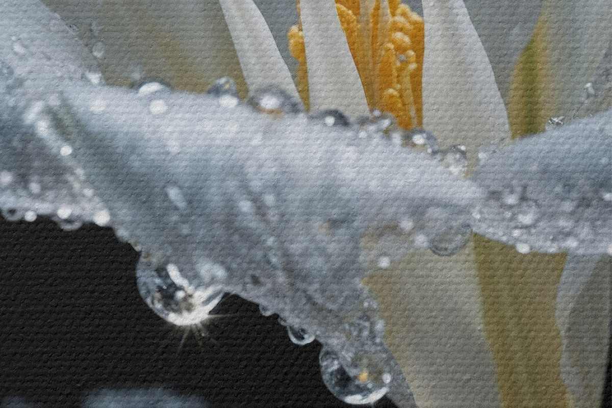 Er zijn drie soorten materiaal te bestellen: Economic Canvas - een dicht en duurzaam materiaal voor digitaal printen, identiek aan schildersdoek, waterdicht oppervlak, realistische weergave van details, materiaal met gemiddelde korrel. Premium Canvas - de textuur lijkt op die van schildersdoek (verweven kleine draden). Zachte, gedetailleerde reproductie van de afbeelding op een mat oppervlak. Eco-Premium - hoogwaardige 100% katoenen stof. Dankzij de natuurlijke katoenvezels is het materiaal duurzaam en slijtvast. Uitstekende kleurweergave en detail.