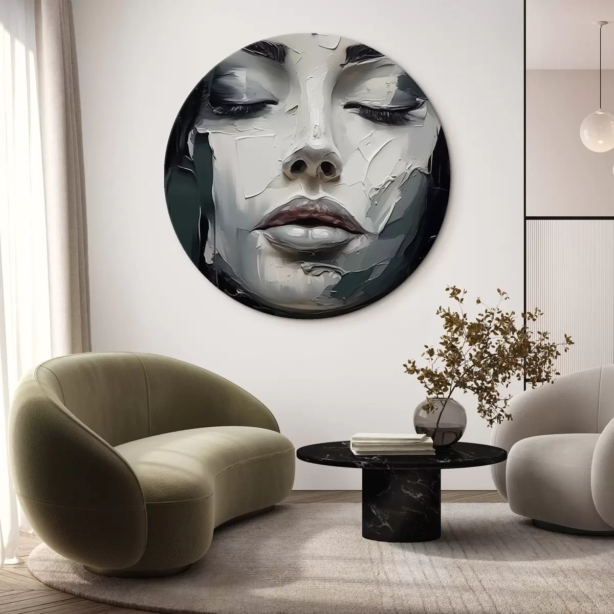 Ronde schilderijen Het gezicht van een vrouw r44484