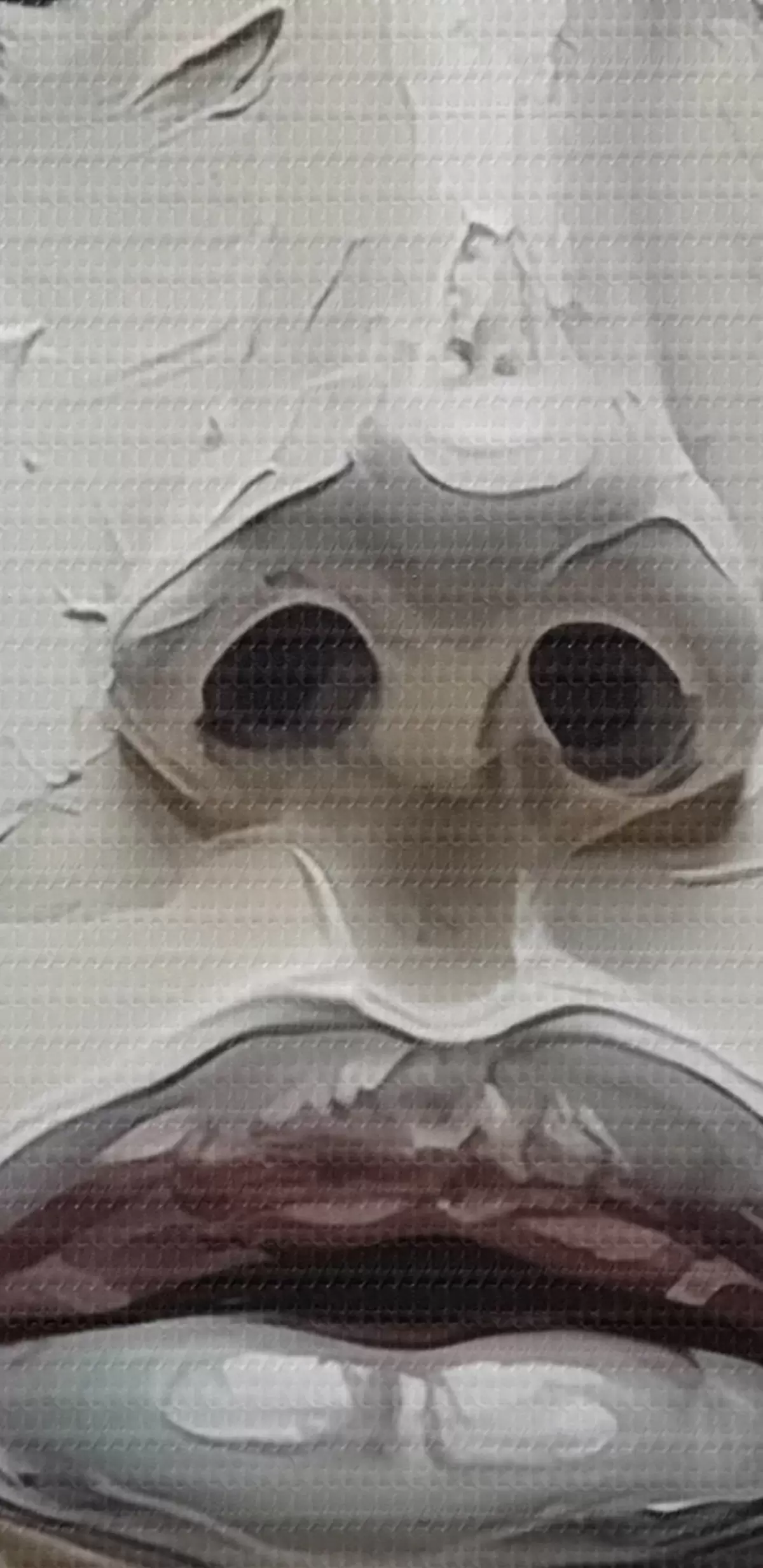 Het schilderij kan voorzichtig worden schoongeveegd met een droge zachte doek of spons; het wordt niet aanbevolen om natte producten te gebruiken. Het gebruik van een vochtige spons is alleen toegestaan als het schilderij gevernist is.