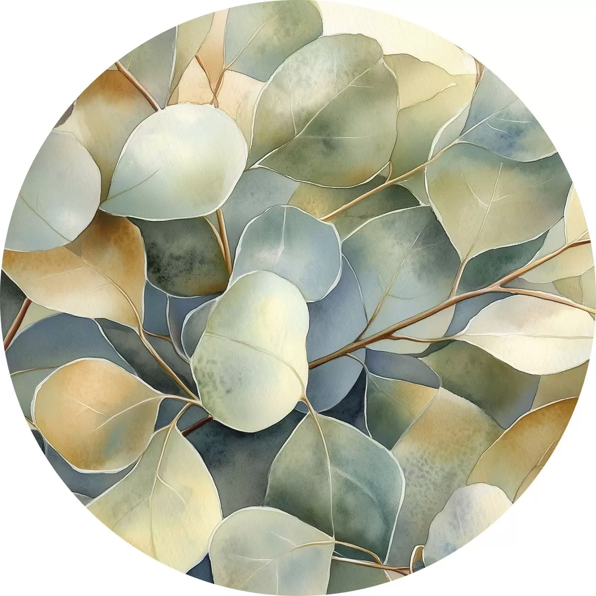 Ronde schilderijen Eucalyptusbladeren, aquarel, natuur r44502