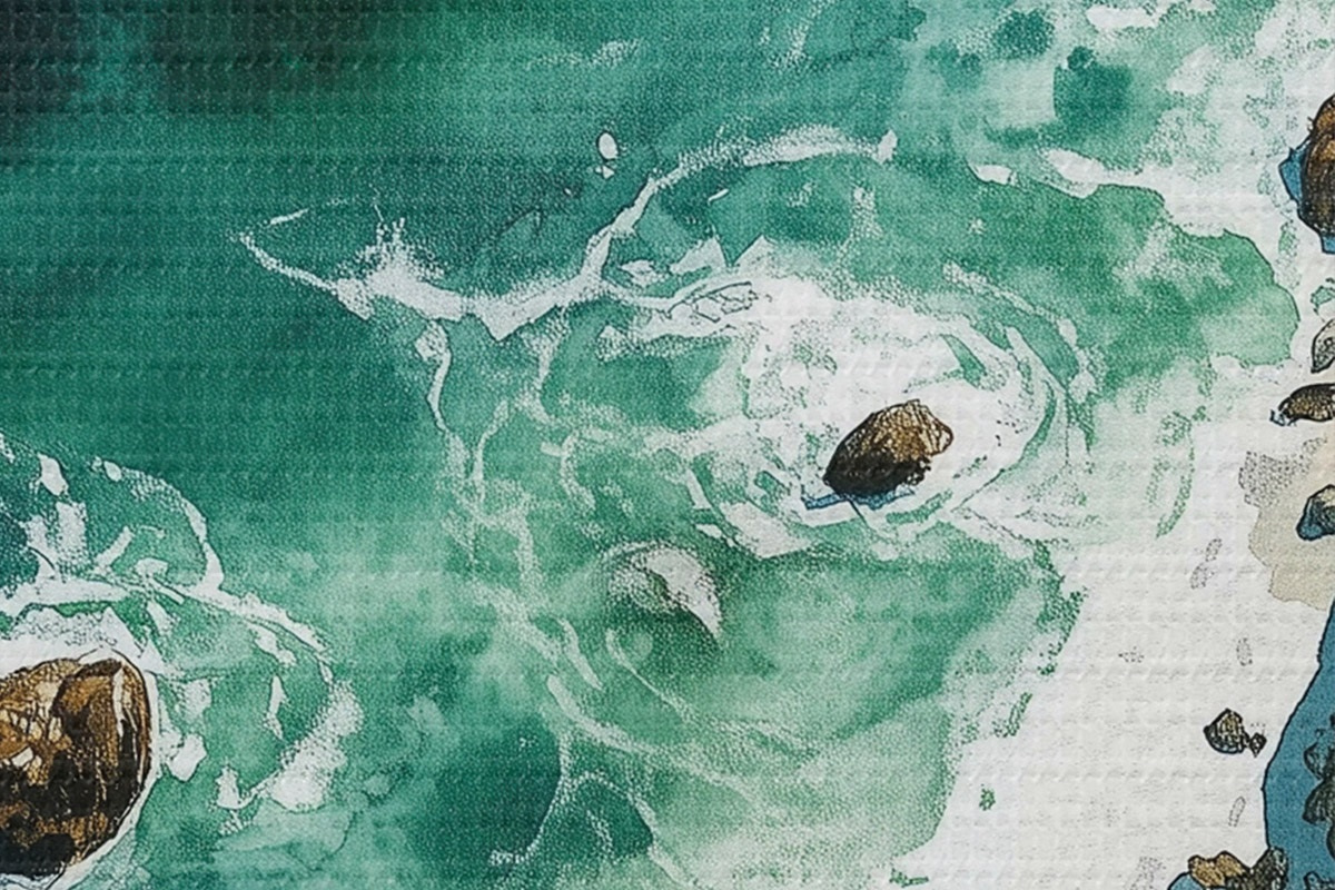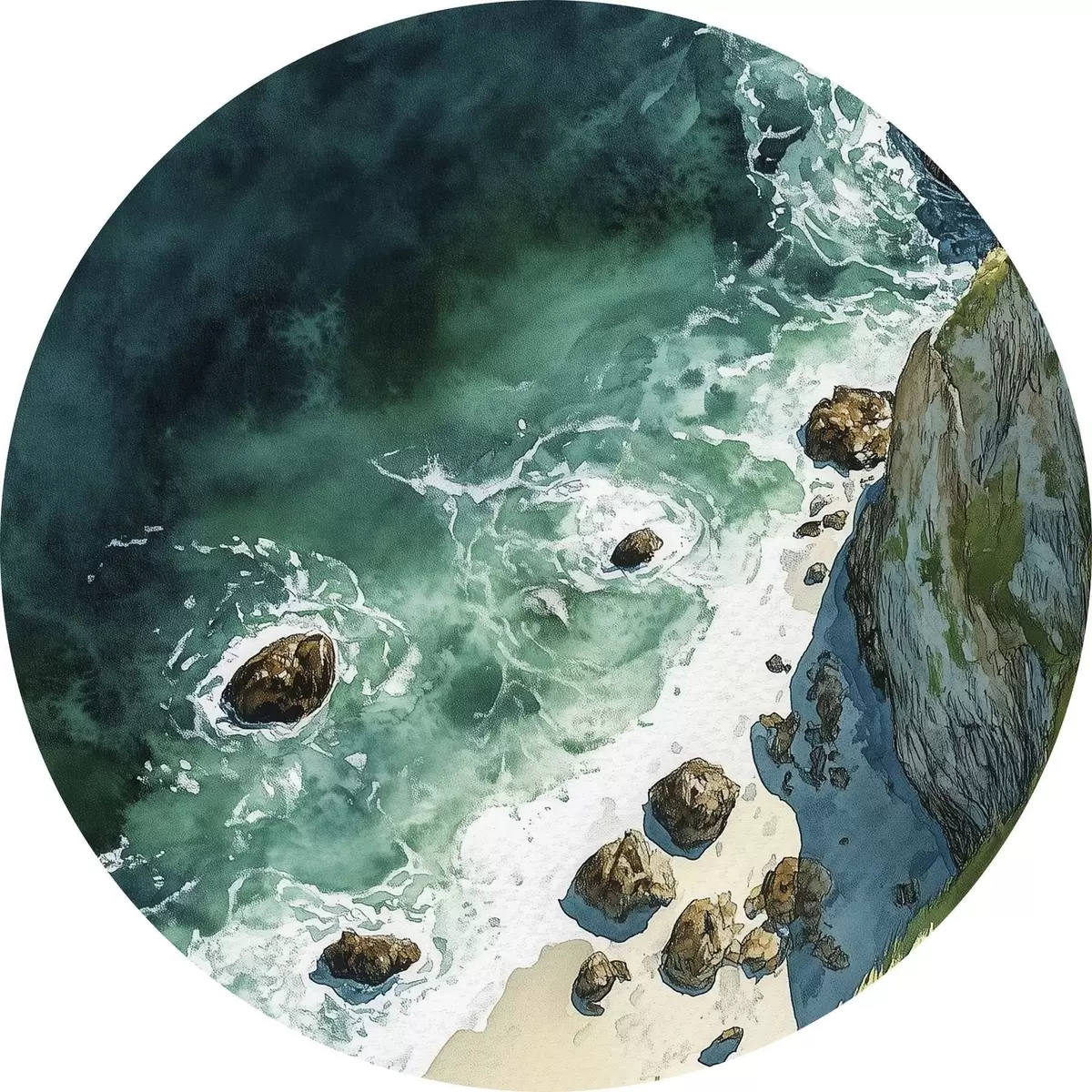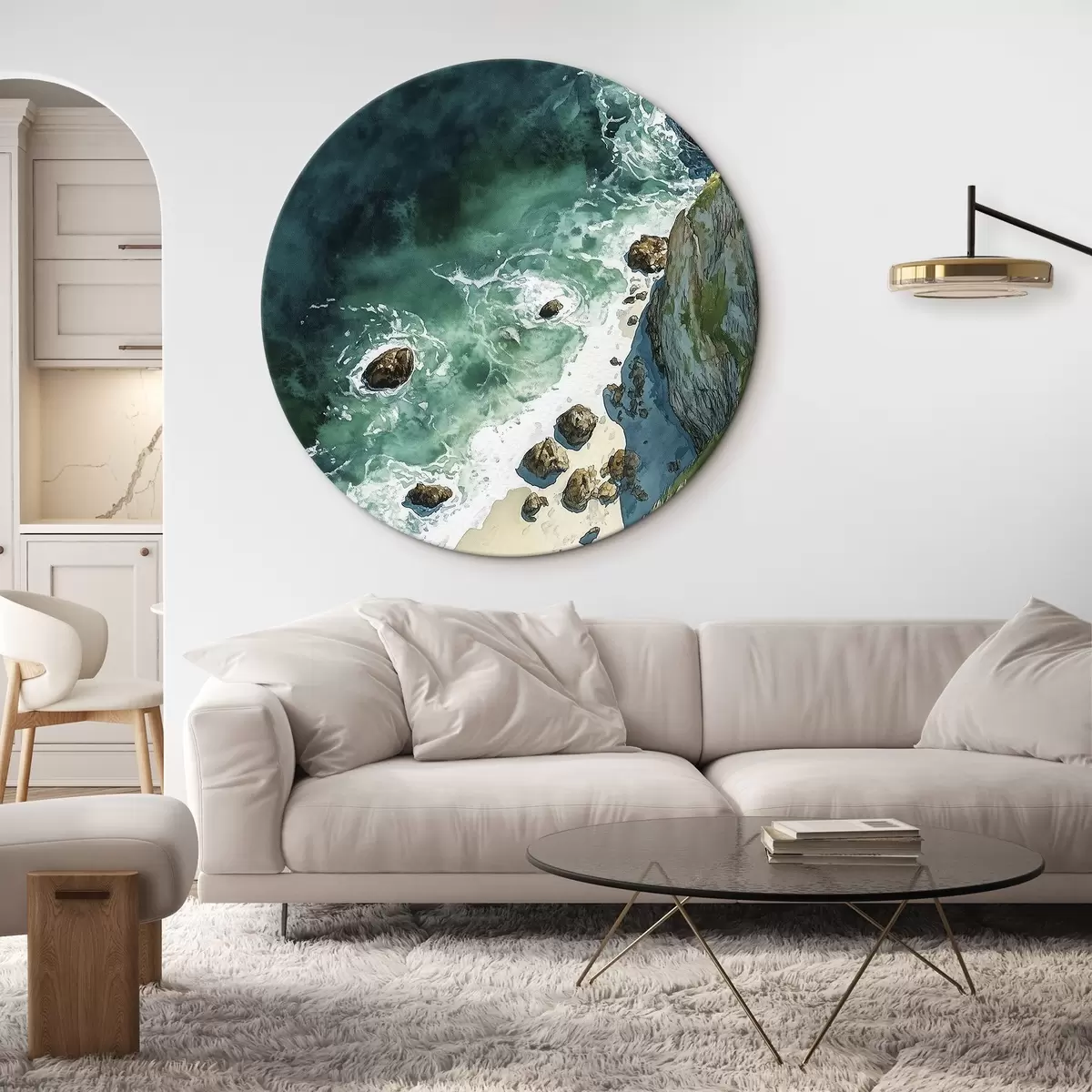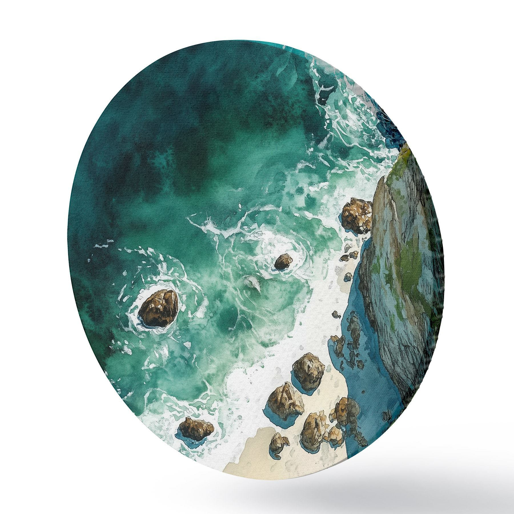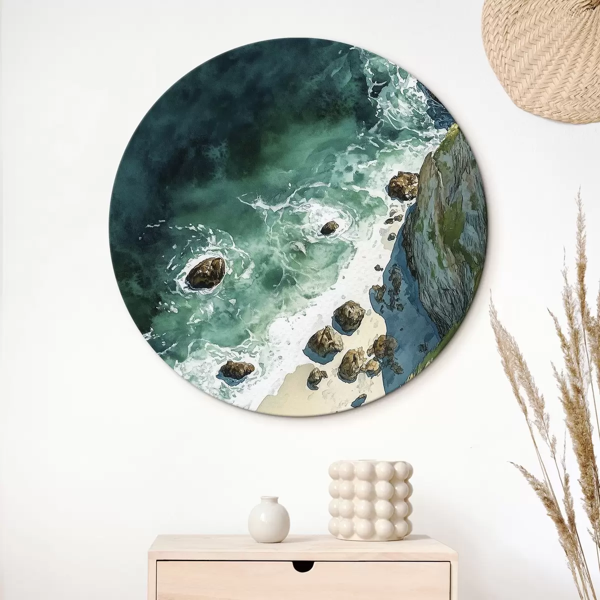 Ronde schilderijen Aquamarijn water, oceaan, rotskliffen, Portugal r44617