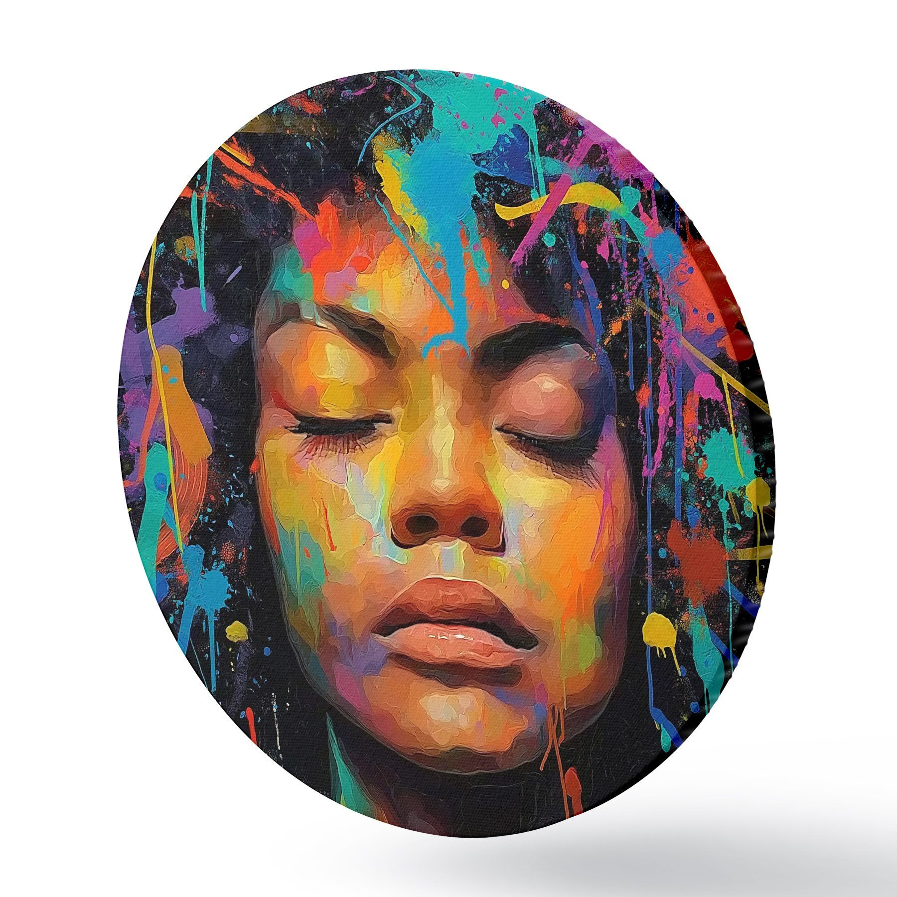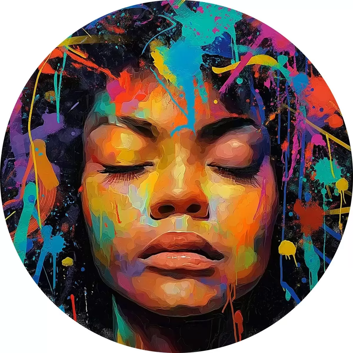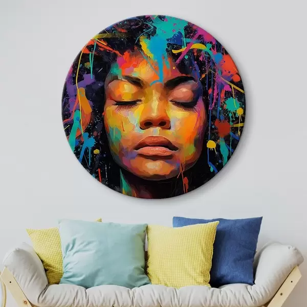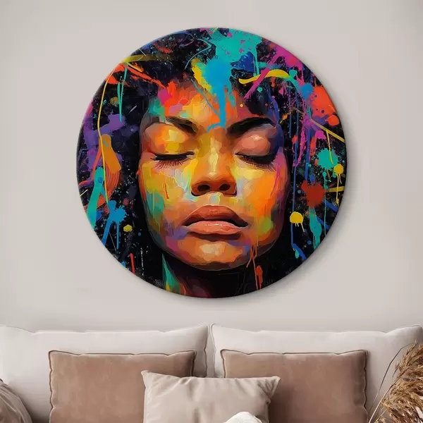Ronde schilderijen Meisje in heldere kleuren, abstracte stijl r44618